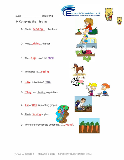 إليكم ورقة عمل في اللغة الانكليزية- الوحدة الخامسة - الفصل الثاني للصف الثاني- العام الدراسي 2016-2017