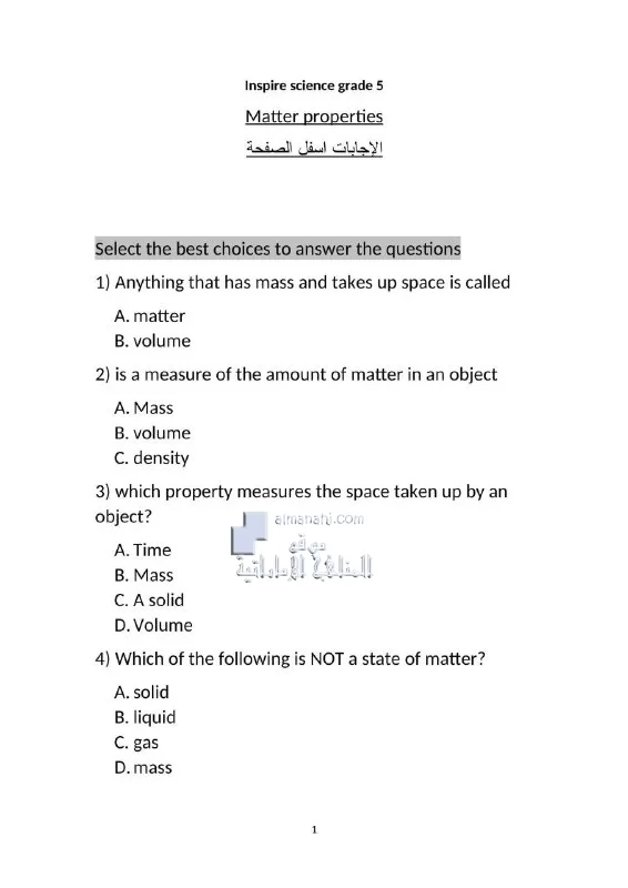 8. الصف الخامس, لغة عربية, نموذج تدريبي وفق الهيكل الوزاري الجديد