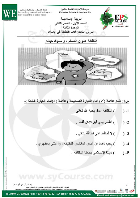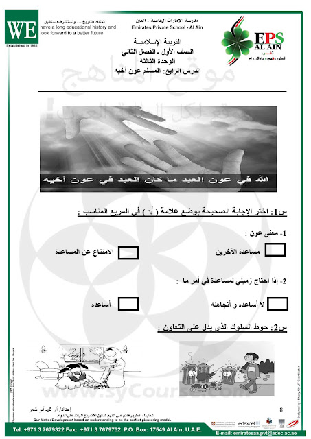 | اوراق عمل الوحدة الثانية والثالثة _ابوهريرة رضي الله عنه ـ الوضوء ـ الرحمة بالحيوان ـ سورة الاخلاص ـ اركان الايمان ـ اداب النظافة في الاسلام ـ المسلم عون اخيه ـ احب اسرتي ـ رسولنا محمد( ص ) في رعاية جده | ||