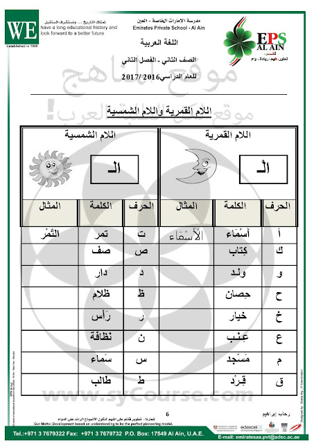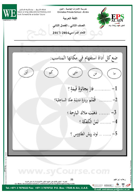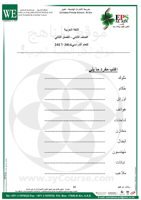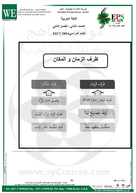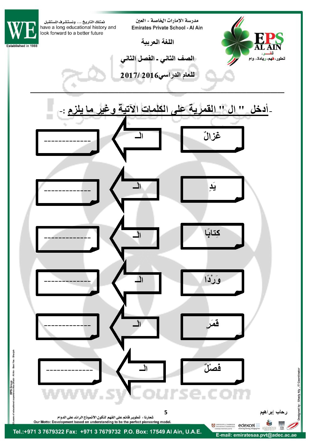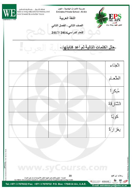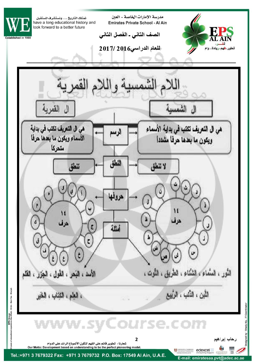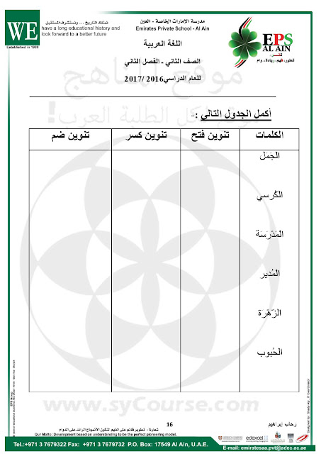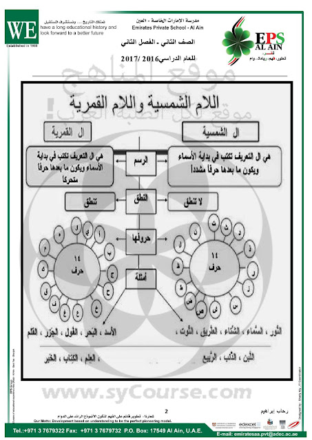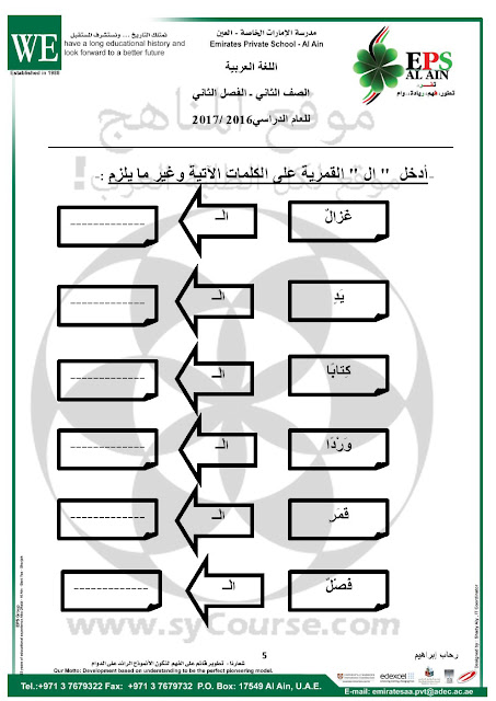 يقدم لكم موقع المناهج بالتعاون مع مدرسة (الامارات الخاصة) أوراق عمل في اللغة العربية - الفصل الثاني من العام الدراسي 2016-2017