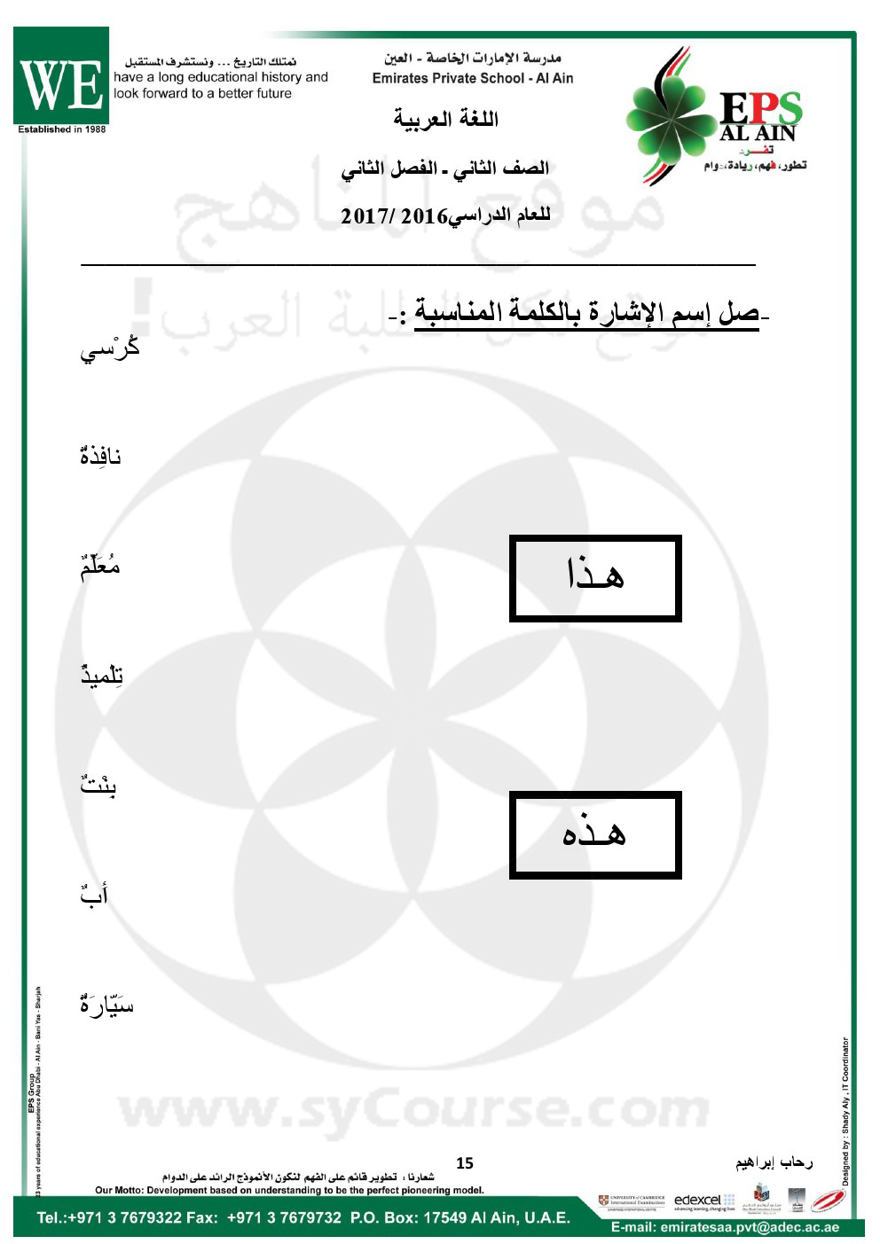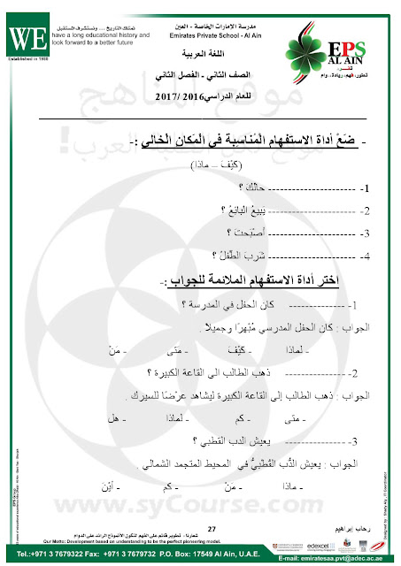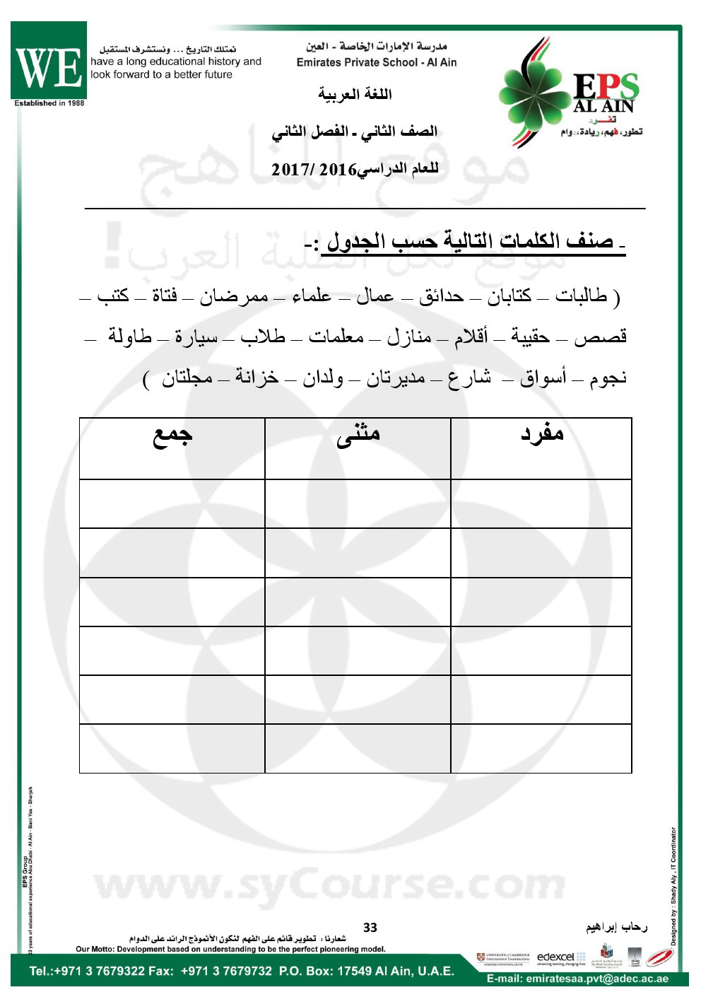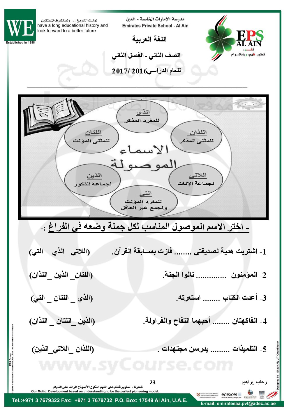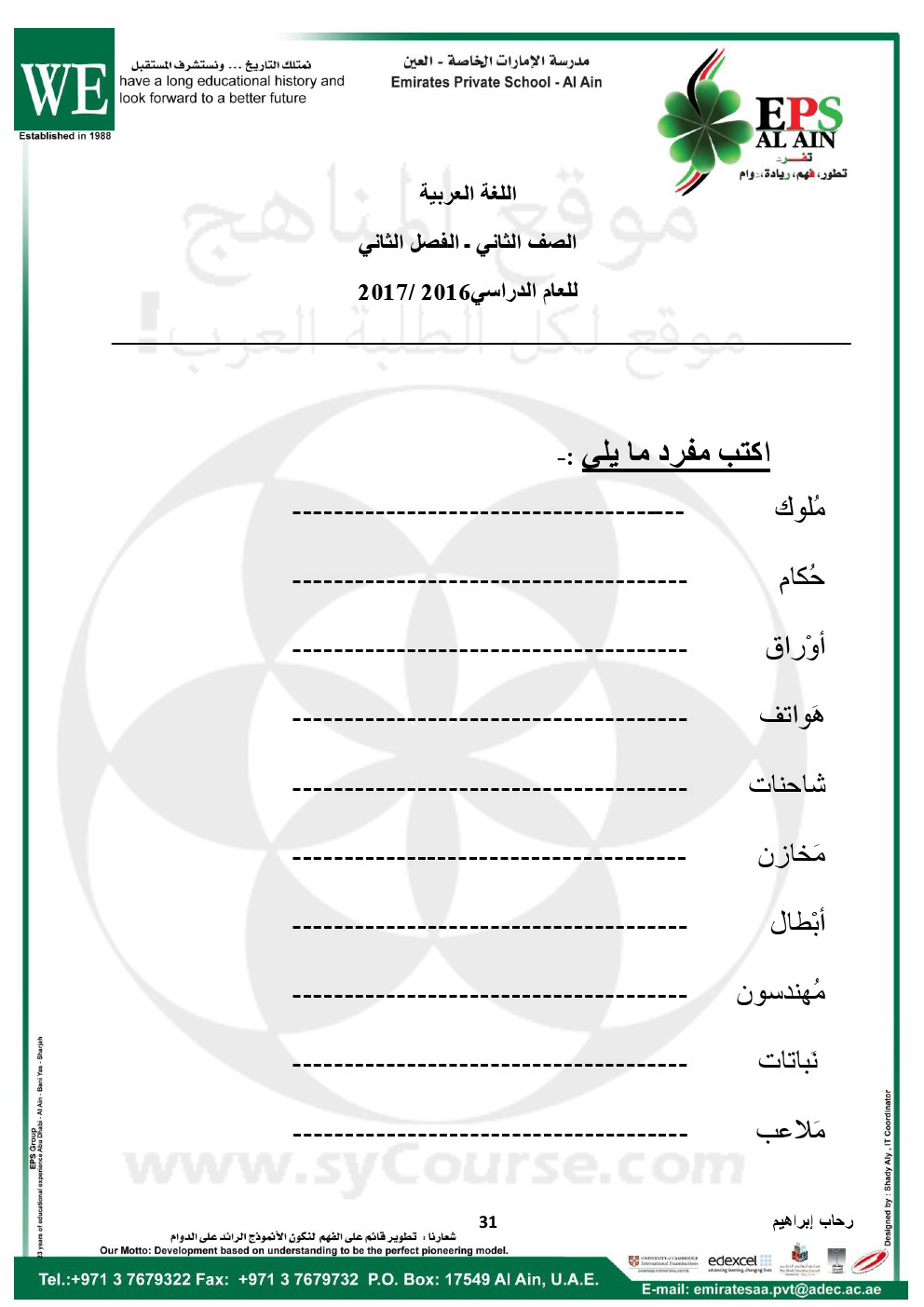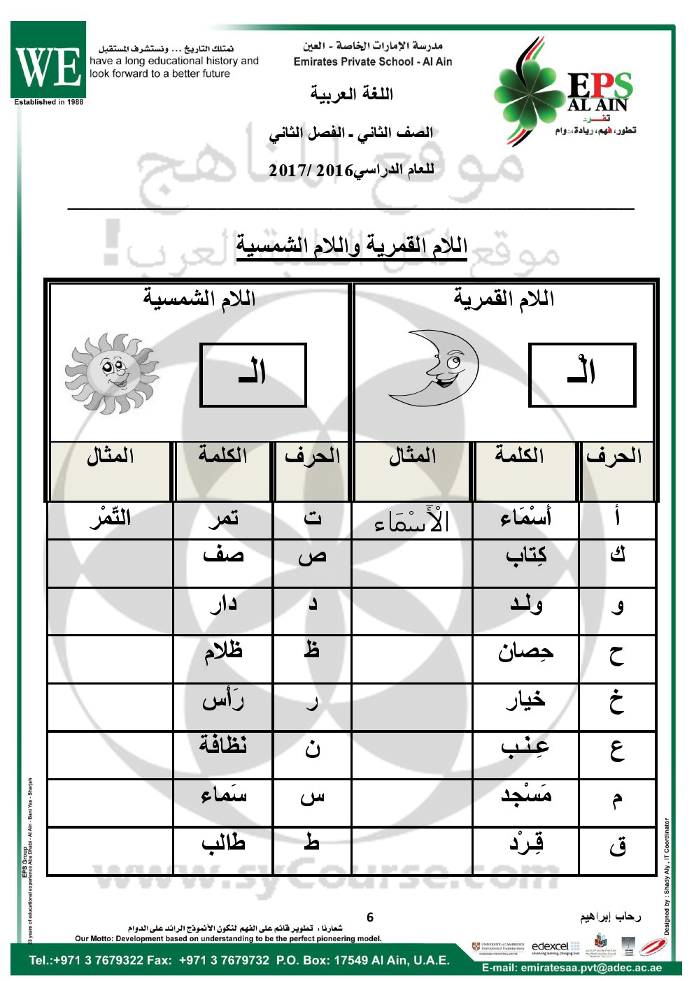يقدم لكم موقع المناهج بالتعاون مع مدرسة (الامارات الخاصة) أوراق عمل في اللغة العربية - الفصل الثاني من العام الدراسي 2016-2017