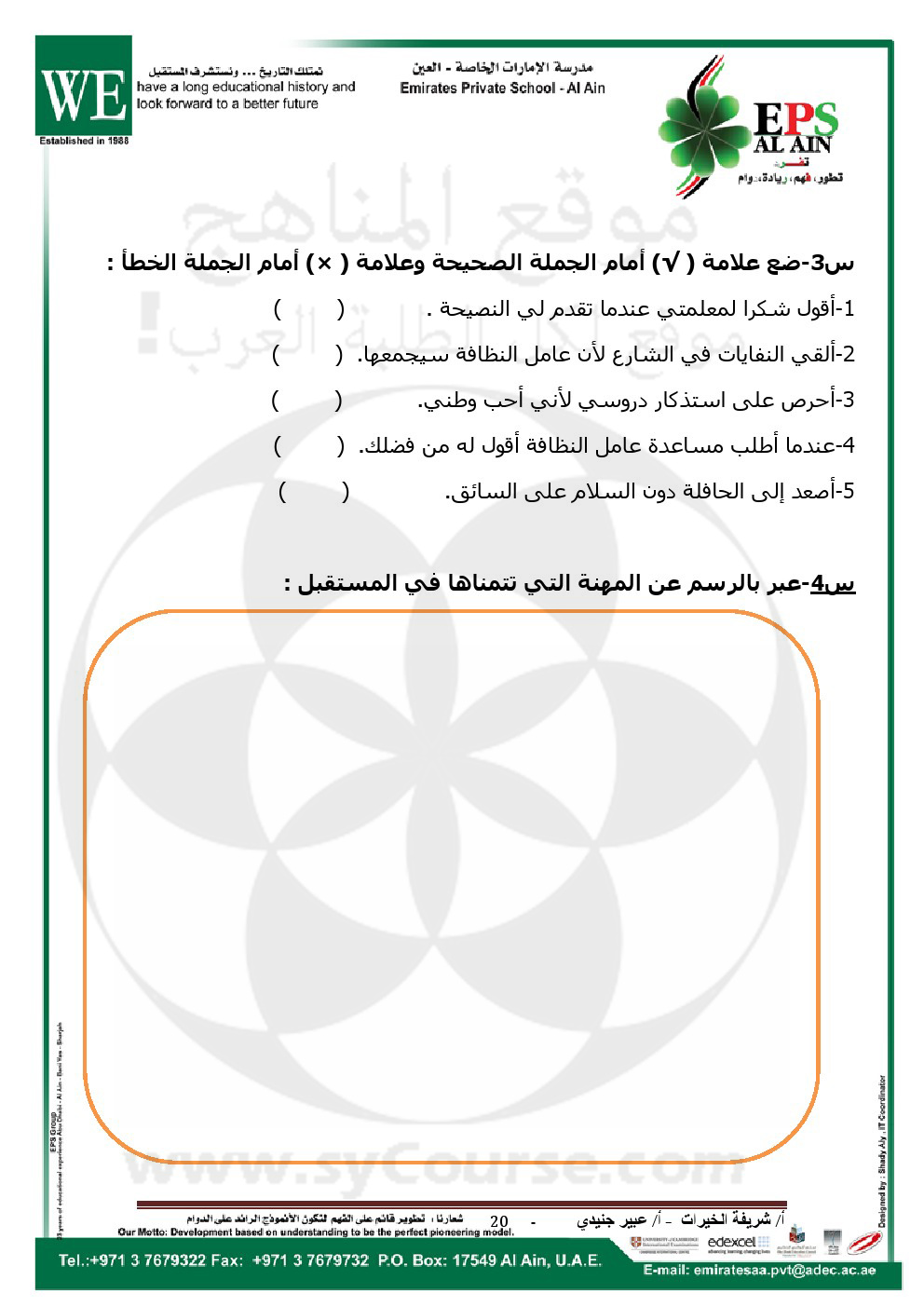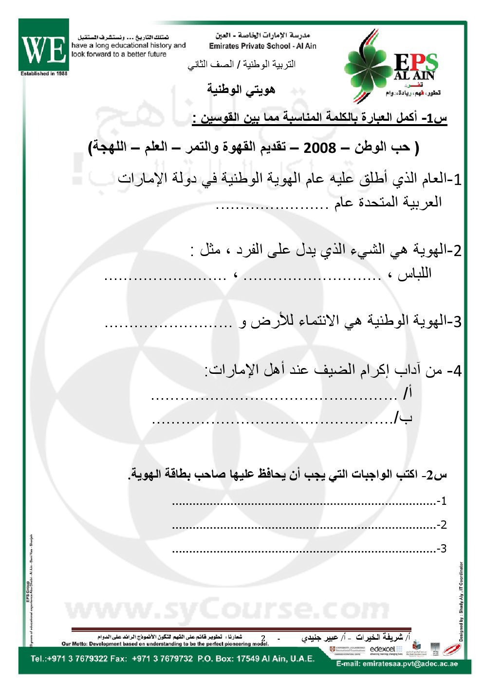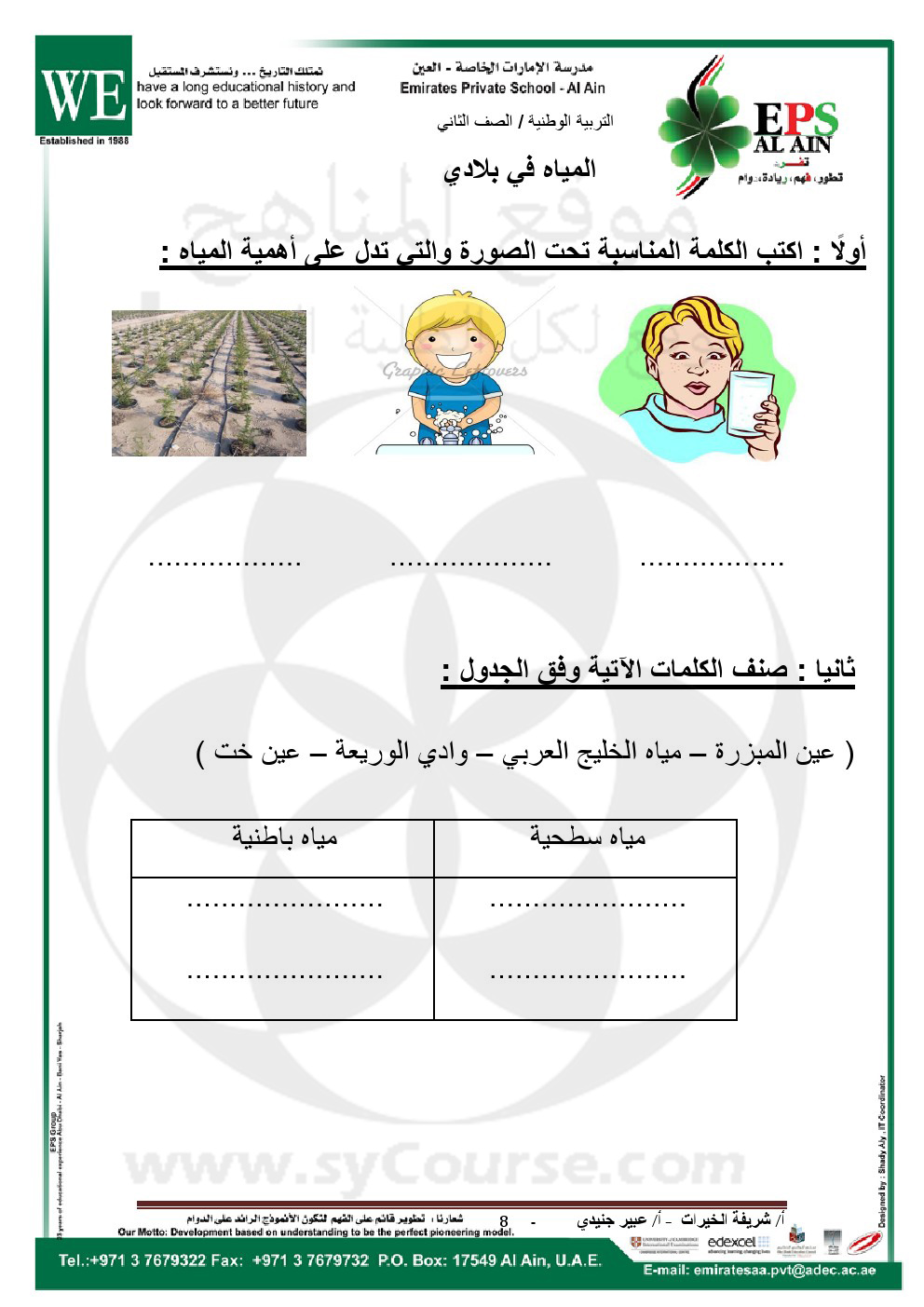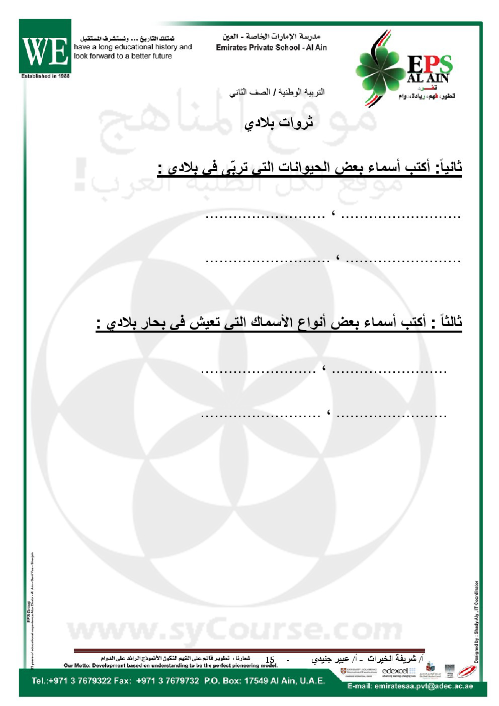 أنت هنا: موقع المناهج ⇦ المناهج الإماراتية ⇦ الصف الثاني ⇦ اجتماعيات ⇦ الفصل الثاني ⇦ أوراق عمل |