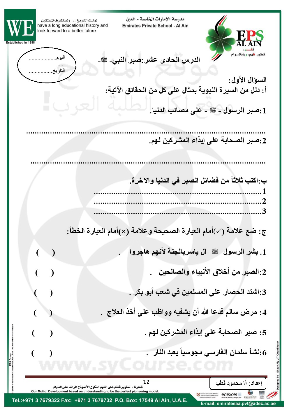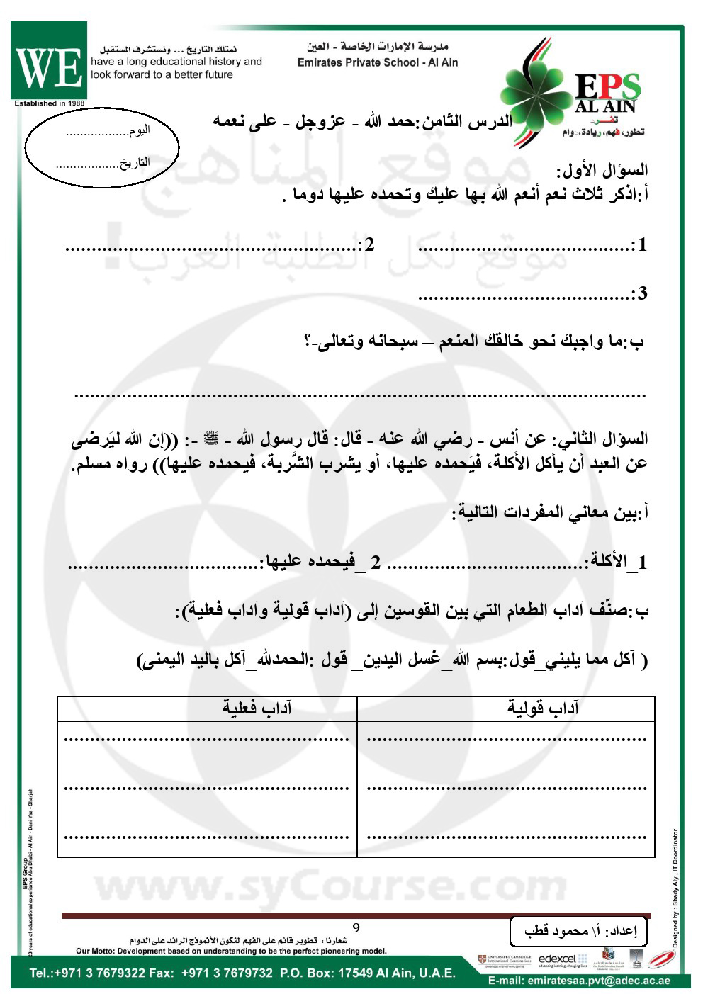 أهلاً بكم جميعاً طلاباً ومدرسين وأهالي طلبة ومهتمين، في قسم دولة الإمارات ، نحن الآن في الفصل الأول من العام الدراسي 2025/2026 وتاريخ اليوم 2025/12/06 م