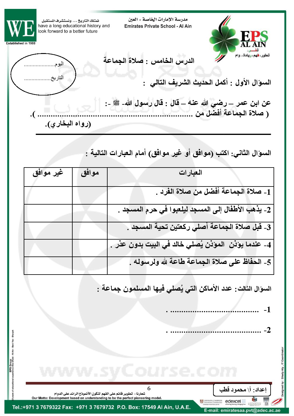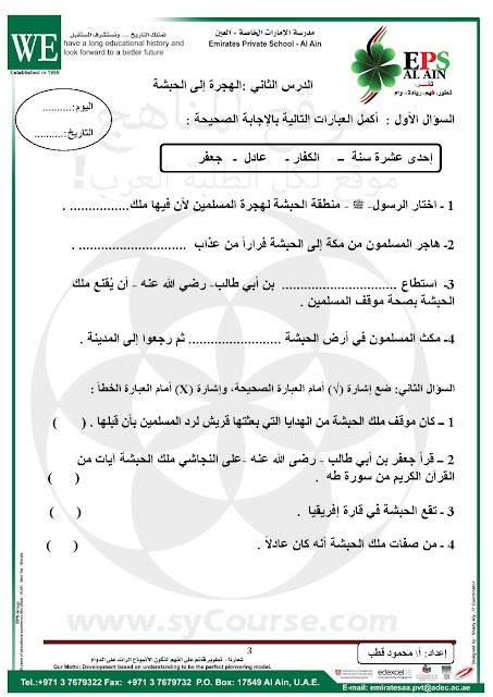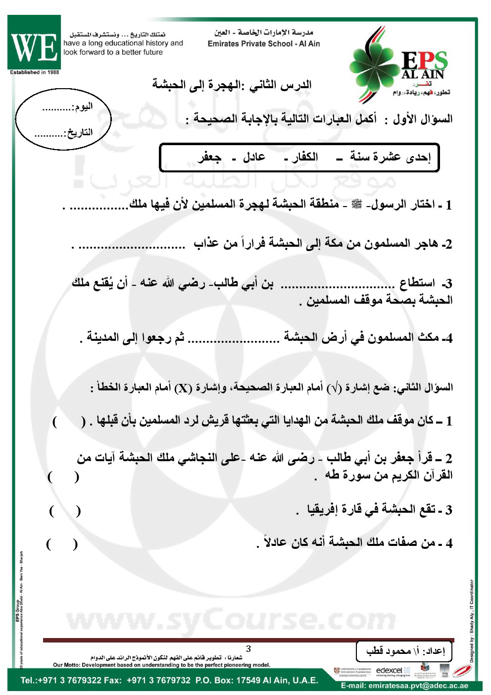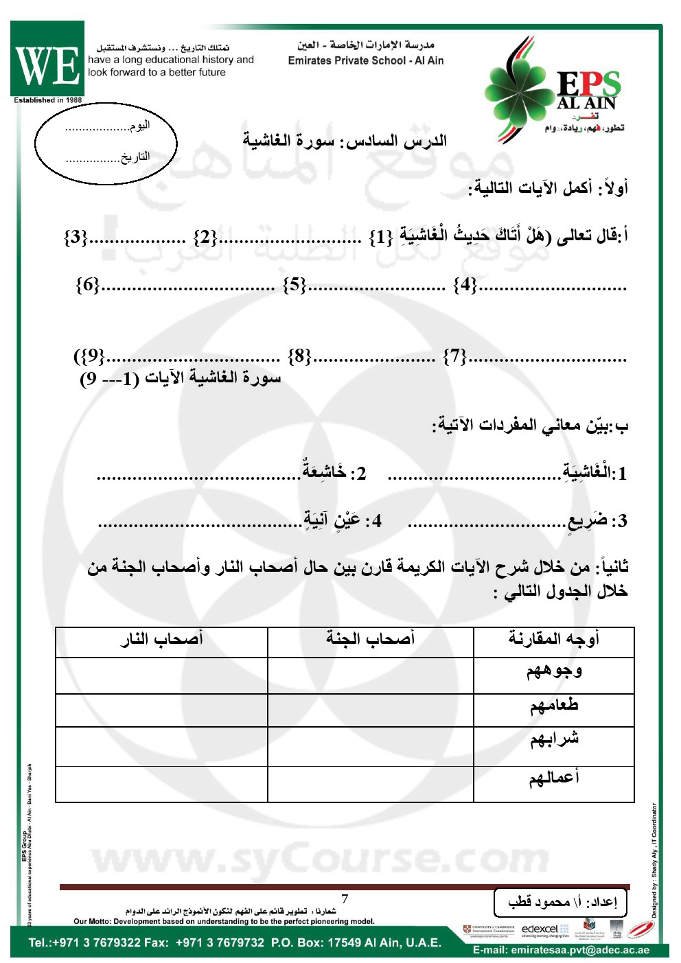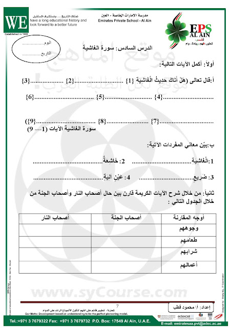 5. الصف التاسع, تربية اسلامية, تدريبات عامة جميع الدروس اختيار من متعدد
