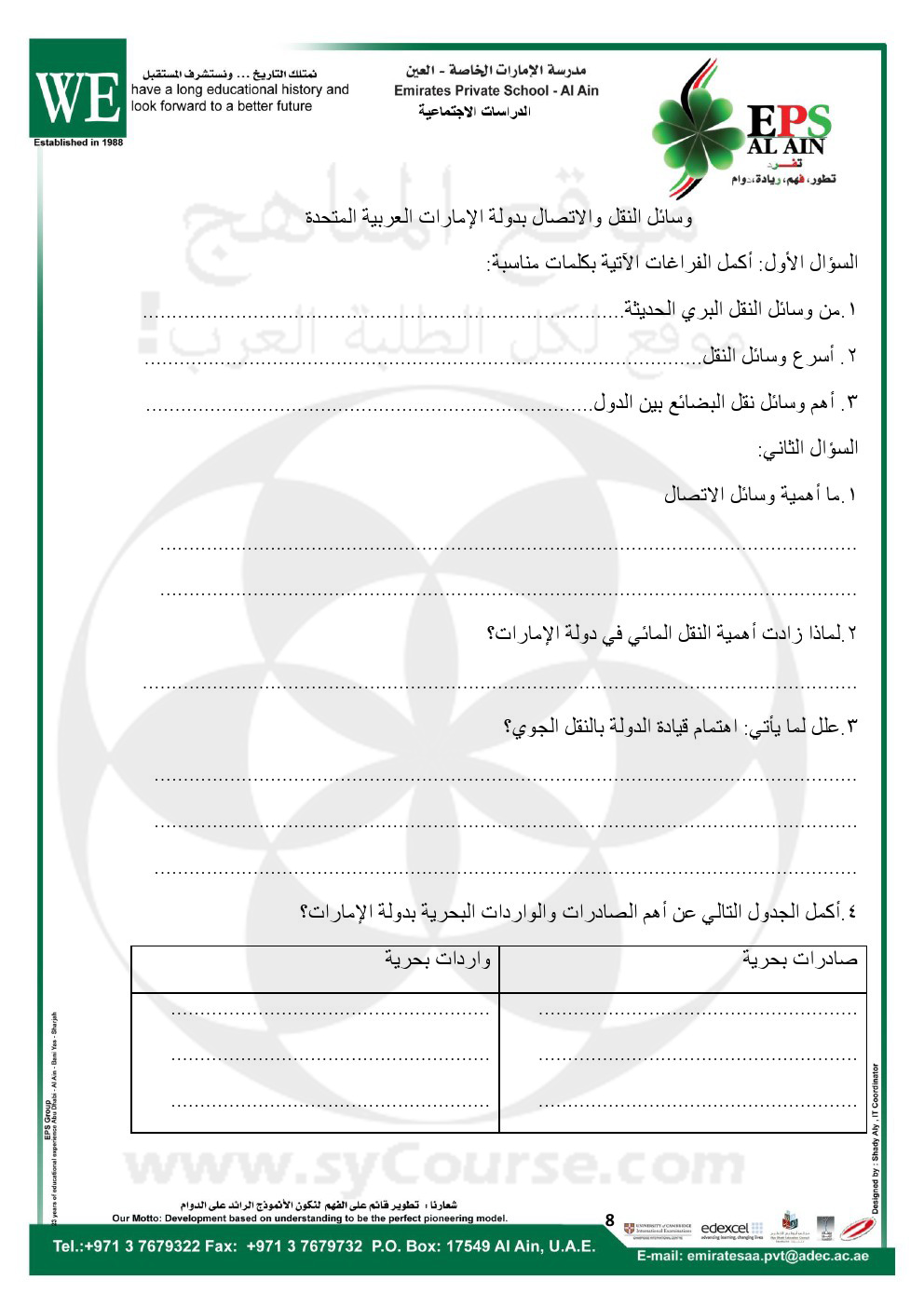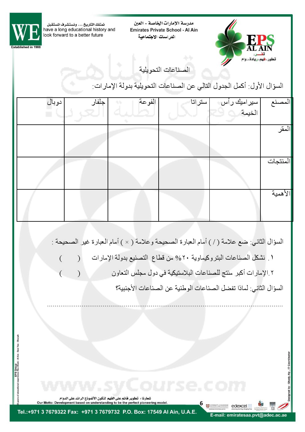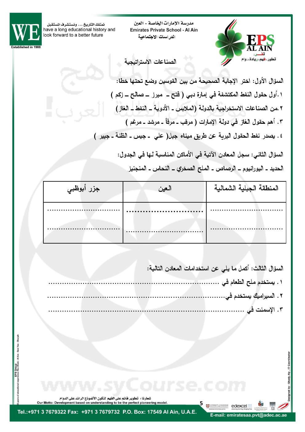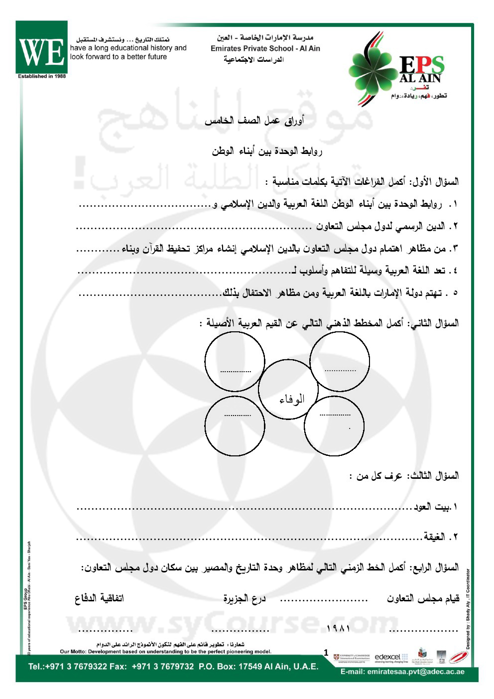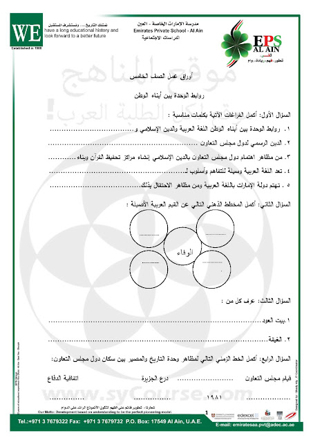| أنت هنا: موقع المناهج ⇦ المناهج الإماراتية ⇦ الصف الخامس ⇦ اجتماعيات ⇦ الفصل الثاني ⇦ أوراق عمل |