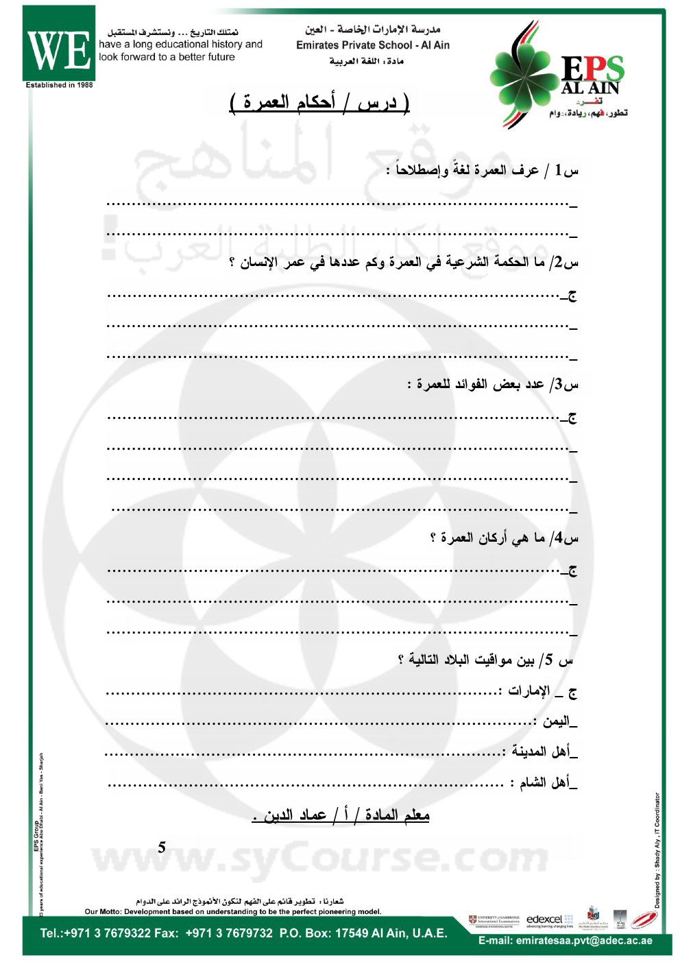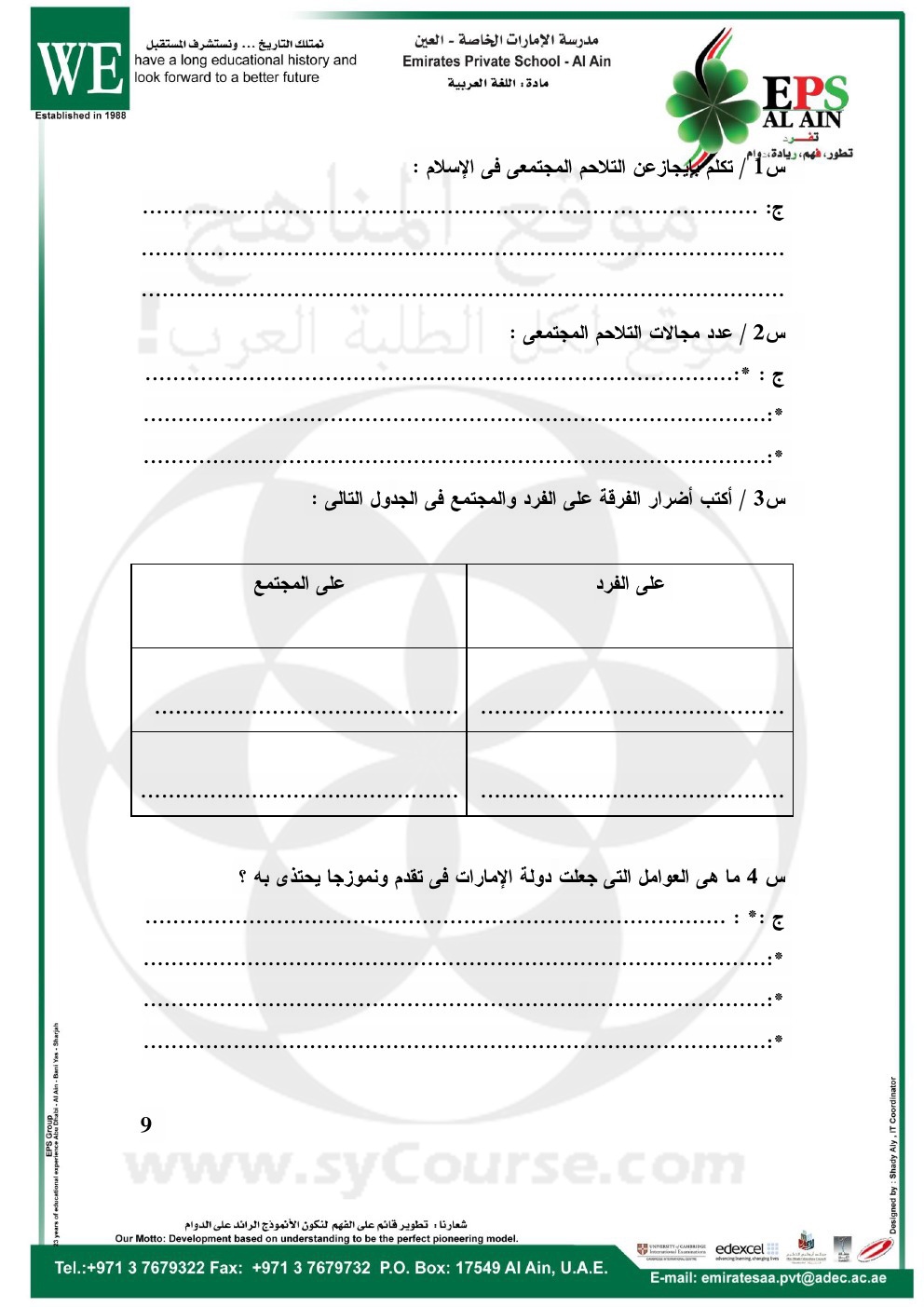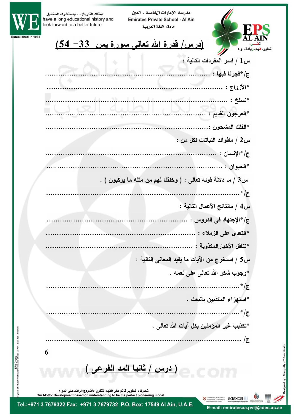 يقدم لكم موقع المناهج الاماراتية بالتعاون مع مدرسة الامارات الخاصة أوراق عمل منتصف الفصل الدراسي الثاني من العام الدراسي 2016-2017