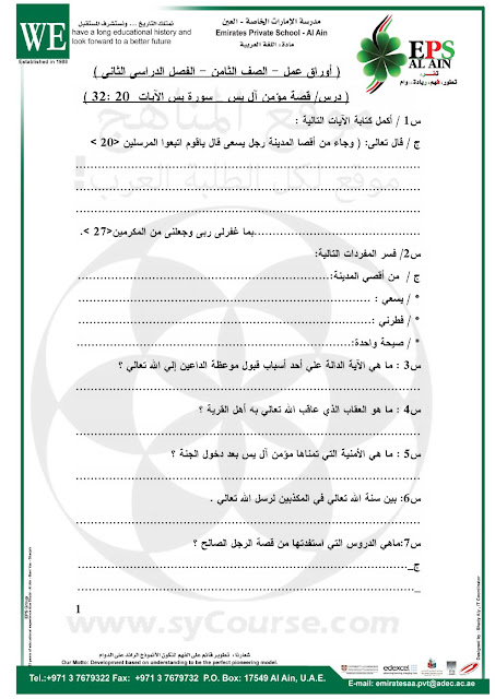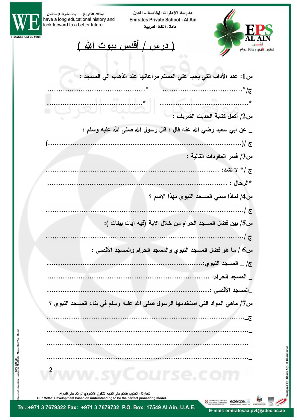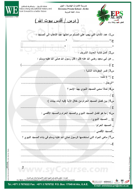 5. الصف الثاني, لغة عربية, أسئلة اختبار تقويم أول مدرسي