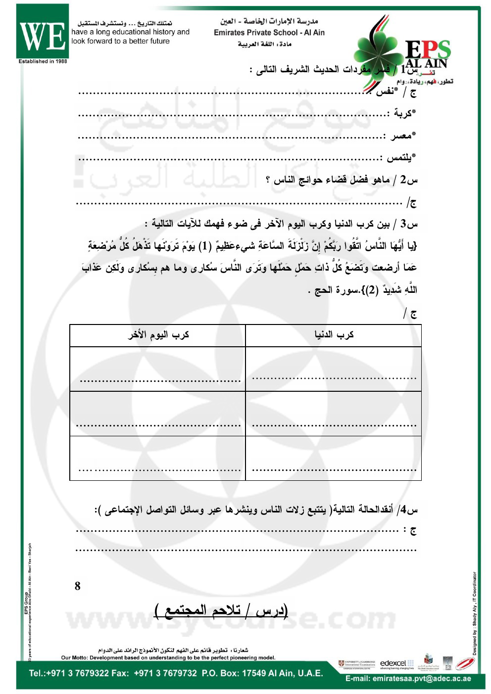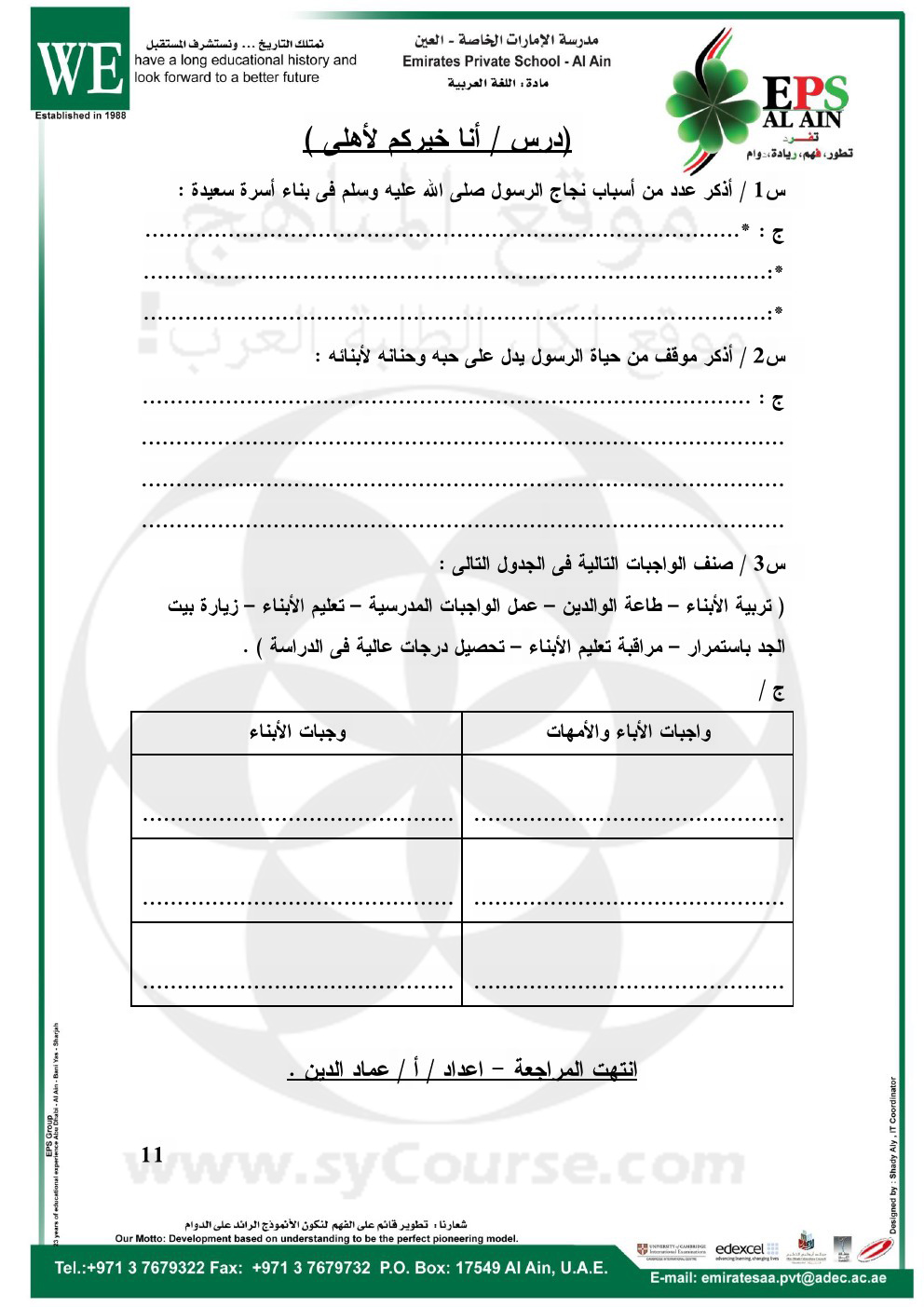 13. الصف الأول, اجتماعيات, مراجعة عامة وشاملة
