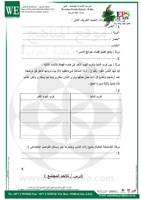 11. الصف الثاني, اجتماعيات, تدريبات ومراجعة التقويم الأول بدون الحل