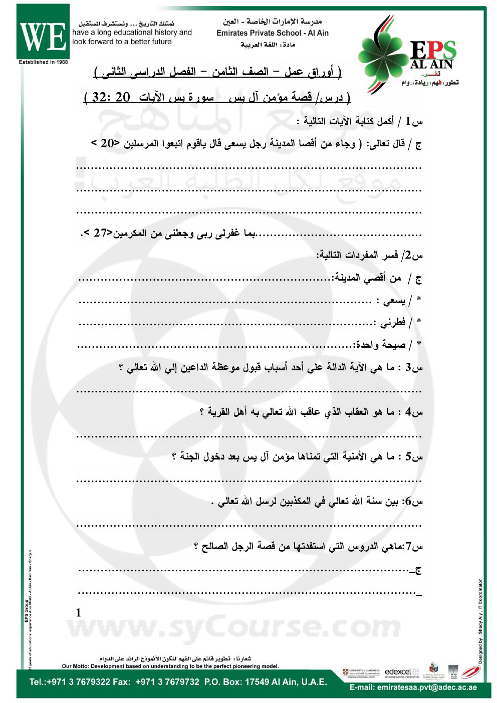 8. الصف الثاني, لغة انجليزية, أسئلة اختبار Writing task revision كتابة