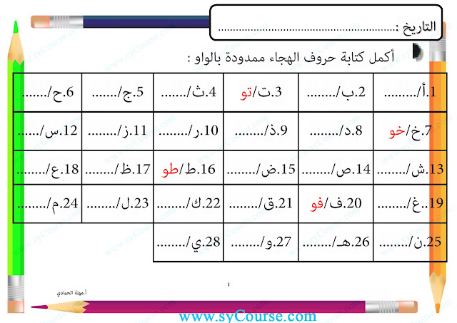 أوراق عمل (مد الواو) ـ صور | ||