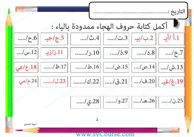 أوراق عمل (مد حرف الياء)ـ صور | ||