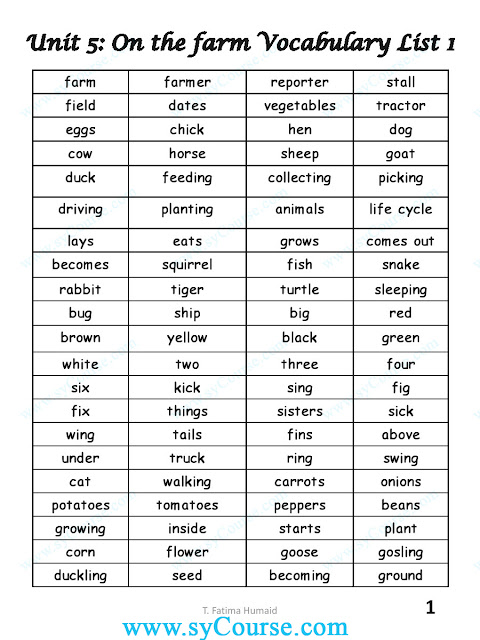 1. أوراق عمل كتابة Nouns in unit 5 الأسماء في الوحدة الخامسة