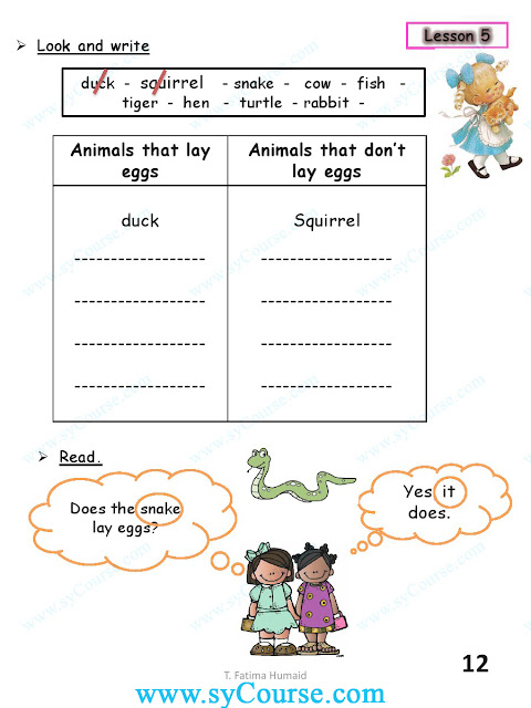 الصف الثاني, الفصل الثاني, لغة انكليزية, مذكرة الوحدة الخامسة
