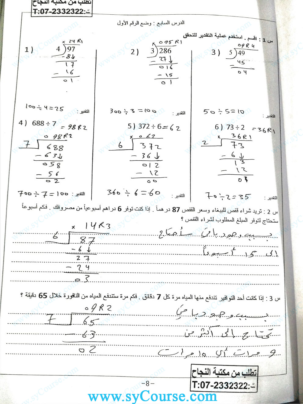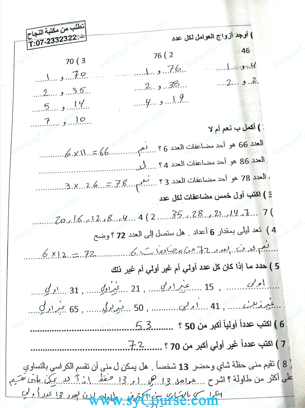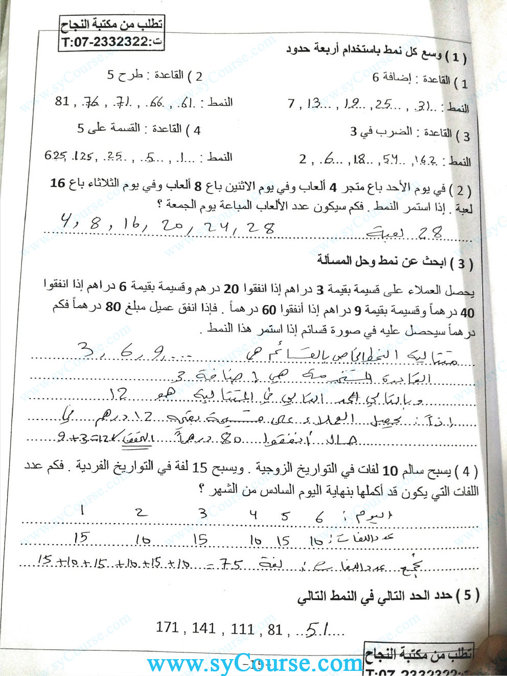 معلومات الملف: الصف الرابع, الفصل الثاني, رياضيات, أوراق عمل الوحدات من 6 حتى 10 | ||