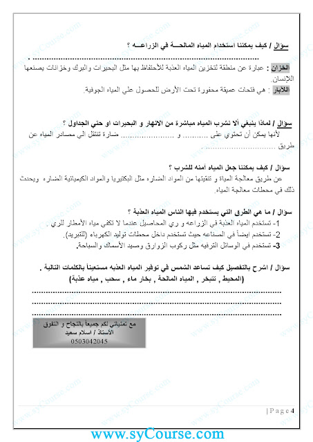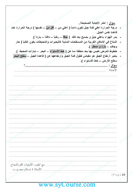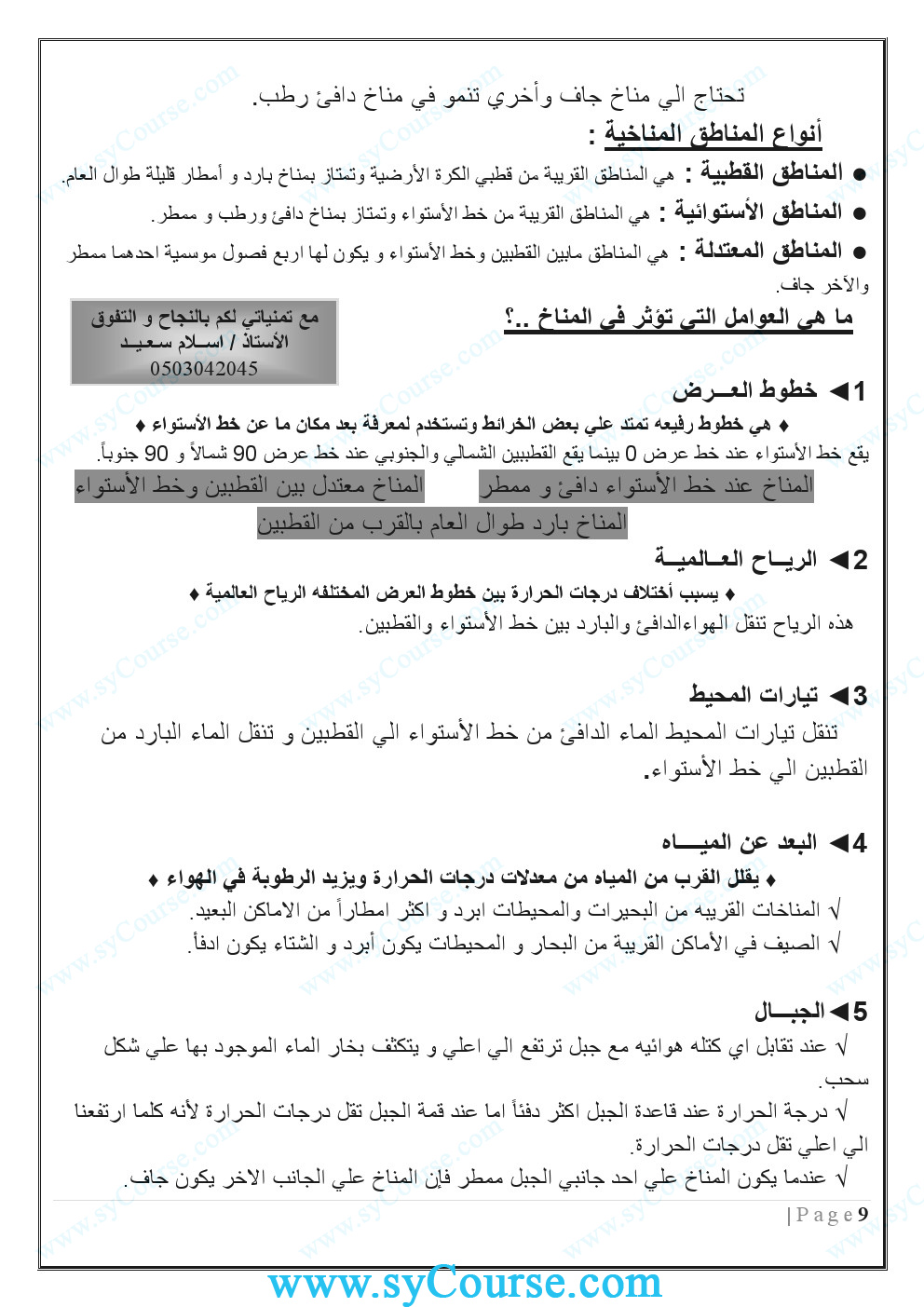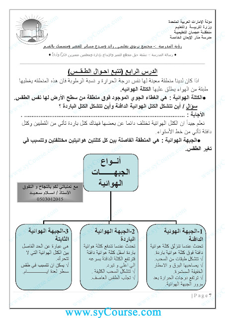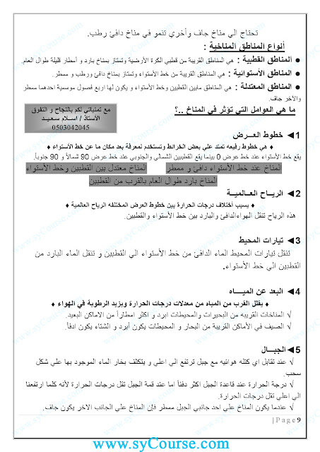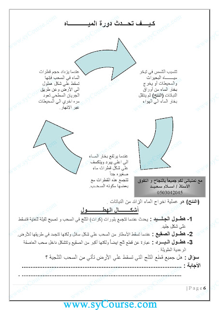 | تلخيص دروس(الهواء والطقس المياه دورة المياه تتبع أحوال الطقس المناخ) | ||