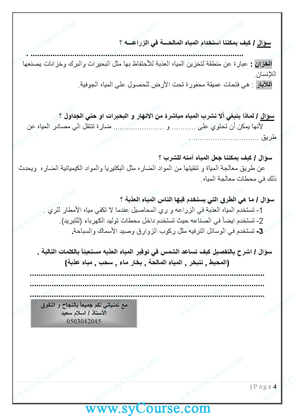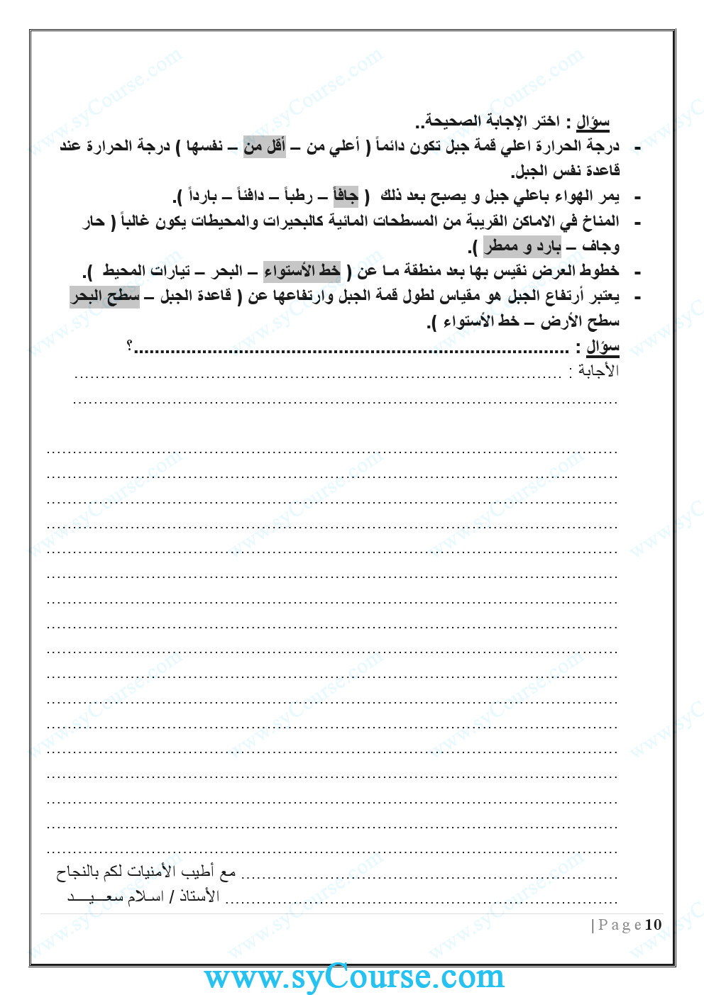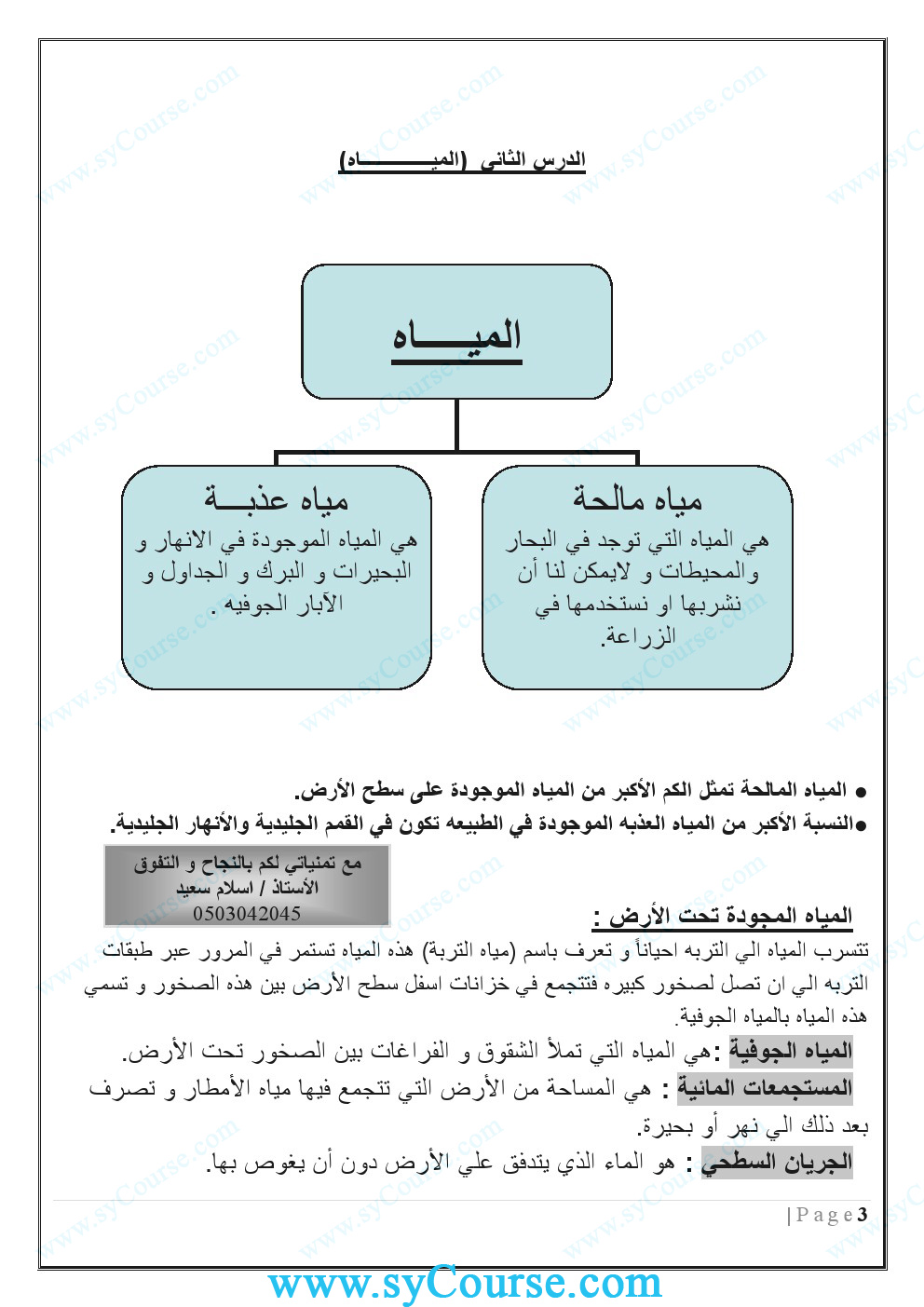 | تلخيص دروس(الهواء والطقس المياه دورة المياه تتبع أحوال الطقس المناخ) | ||