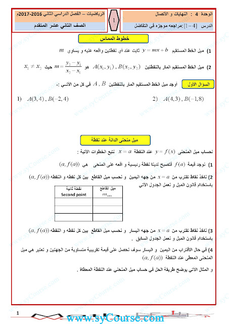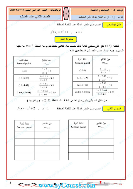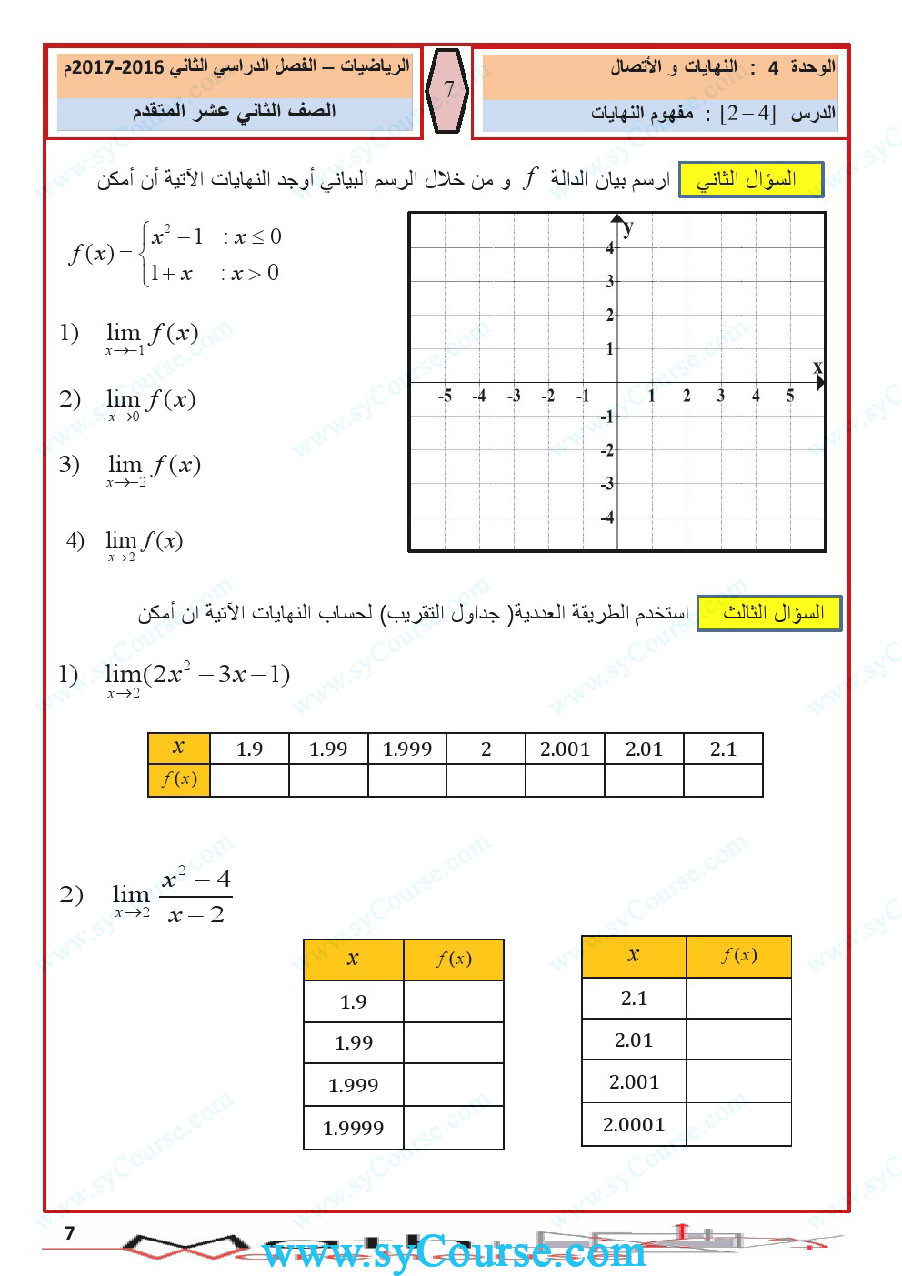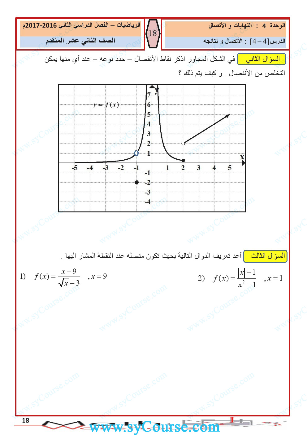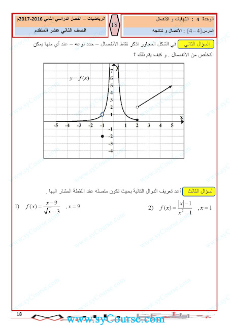 | تدريبات متنوعة مع الشرح على الوحدة الرابعة(النهايات والاتصال) | ||