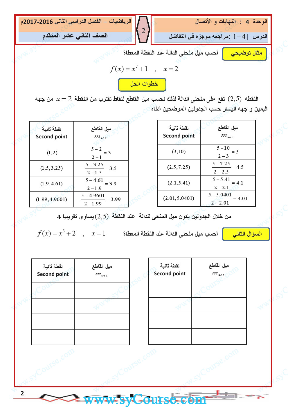 | هل تريد ملفات لمادة أخرى لقسم الصف الثاني عشر المتقدم, الفصل الثاني ؟ اخترها |
