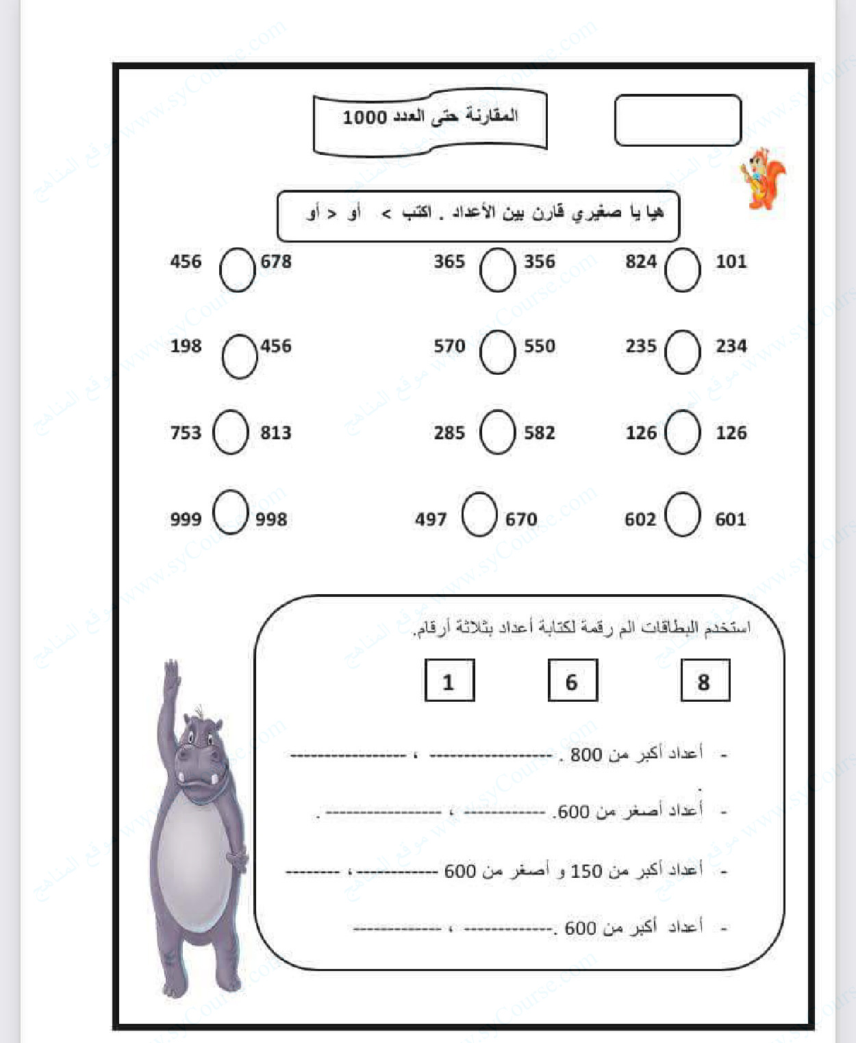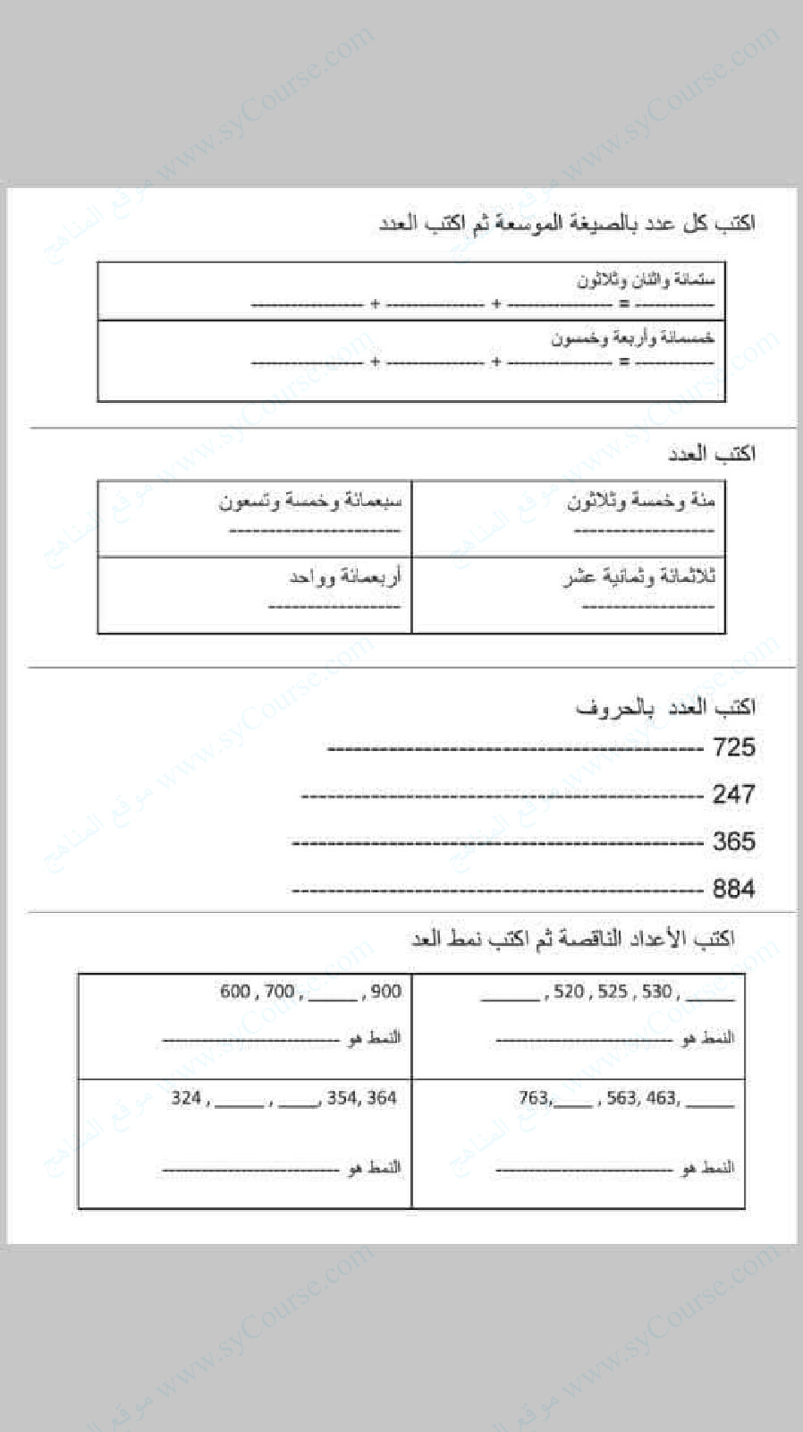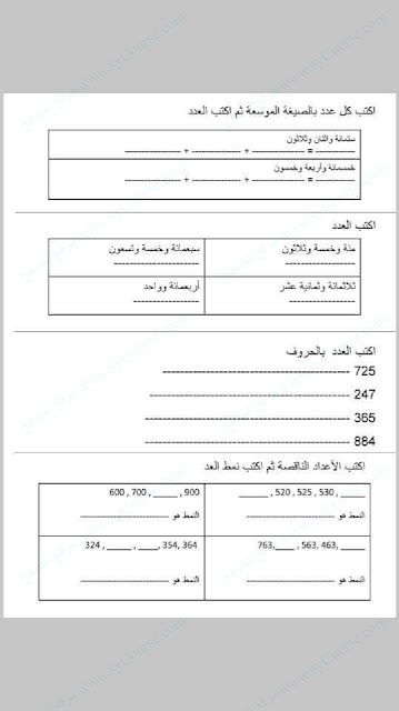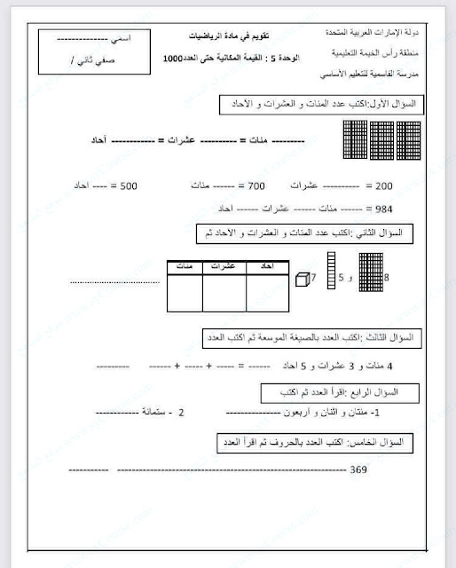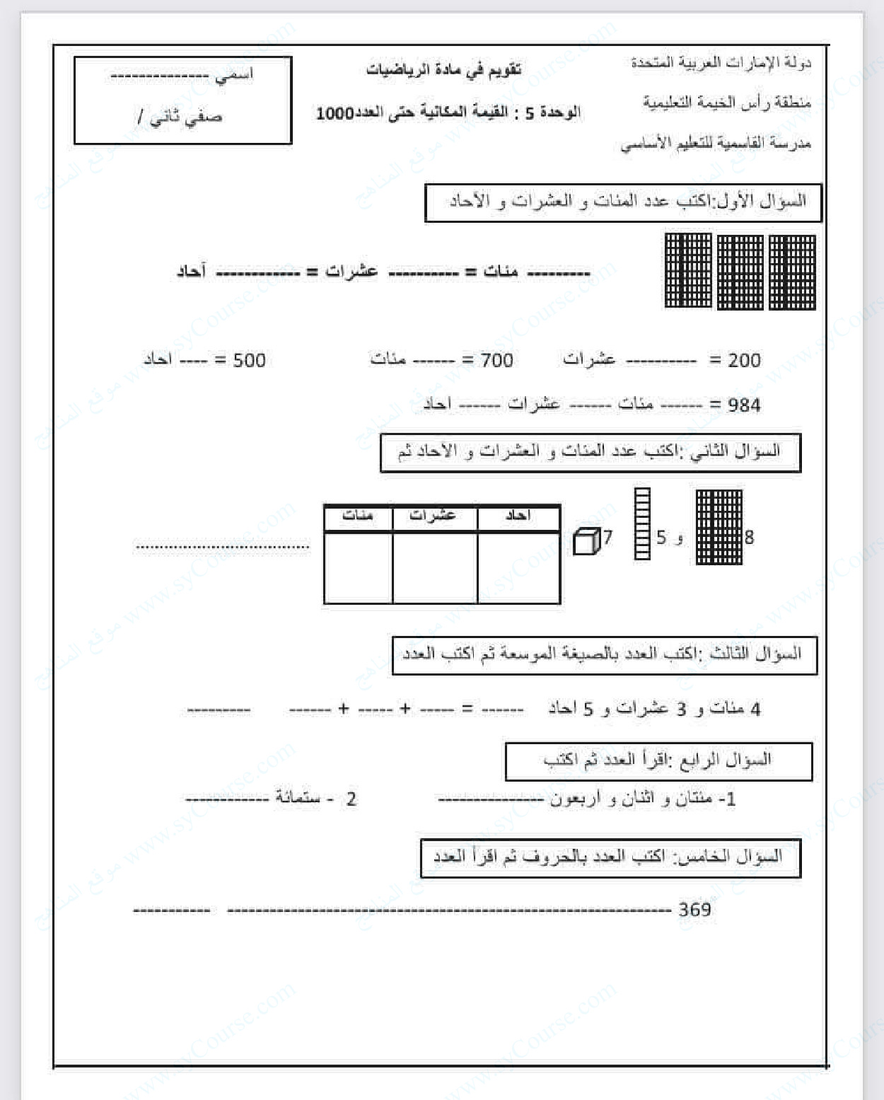 8. مذكرة الوحدة الخامسة القيمة المكانية حتى 1000