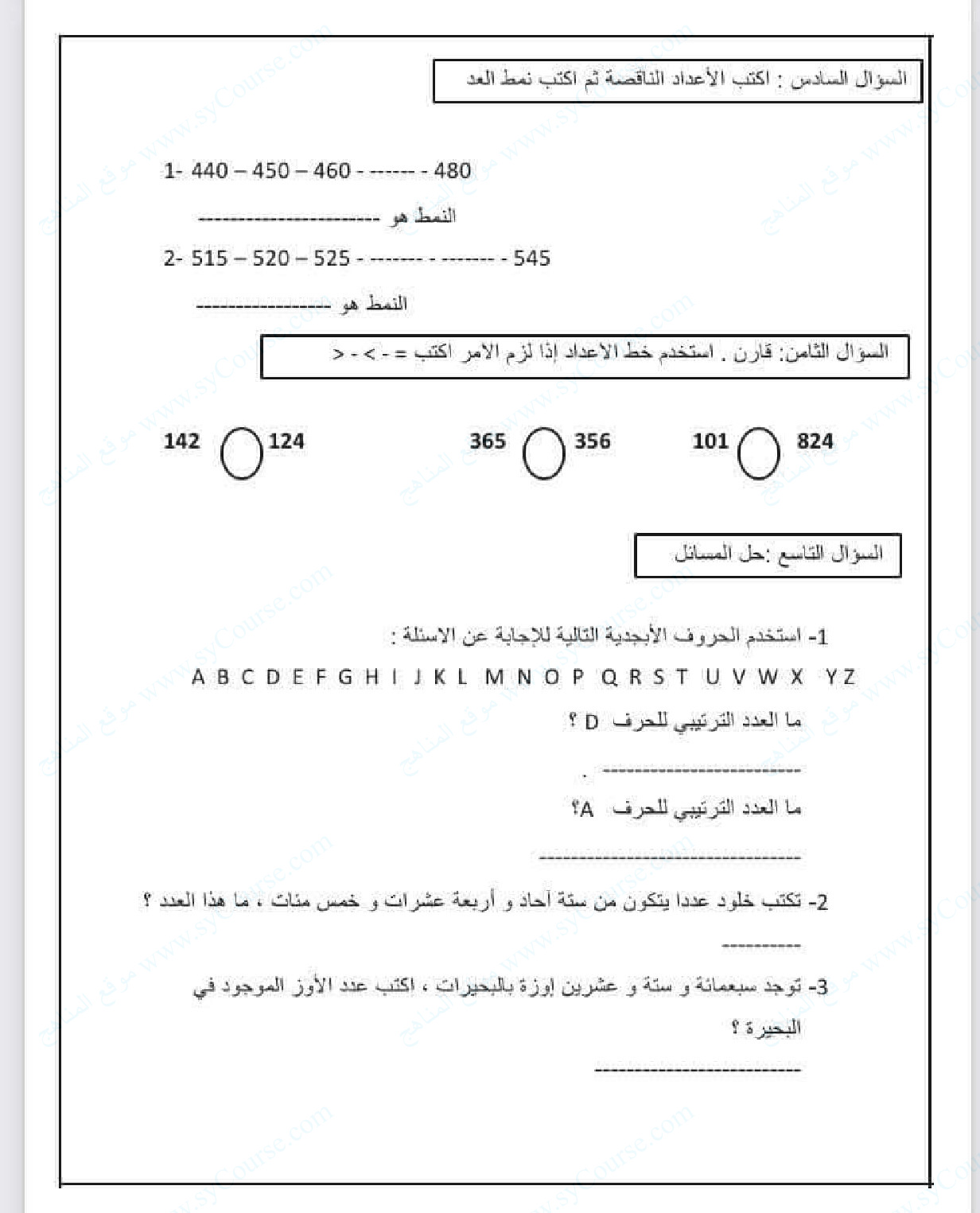 5. الصف الخامس, اجتماعيات, مراجعة على شاكلة الاختبار النهائي