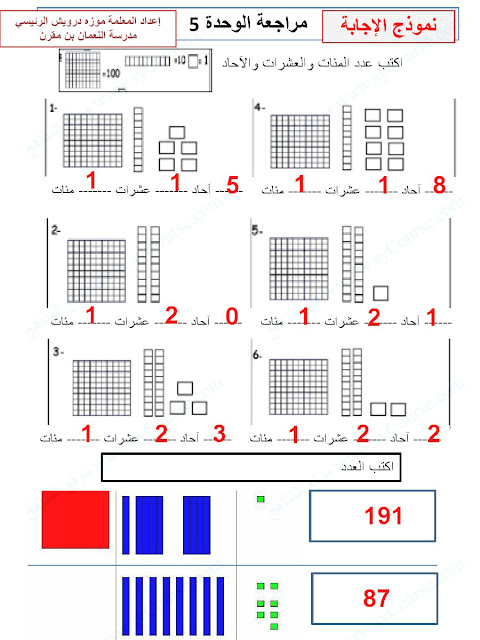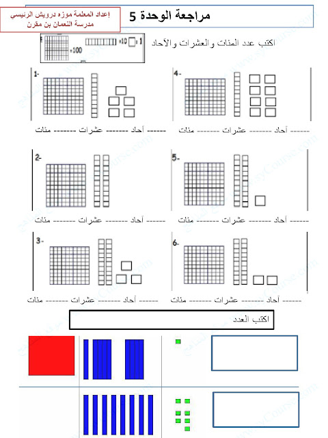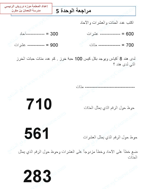 8. مذكرة الوحدة الخامسة القيمة المكانية حتى 1000