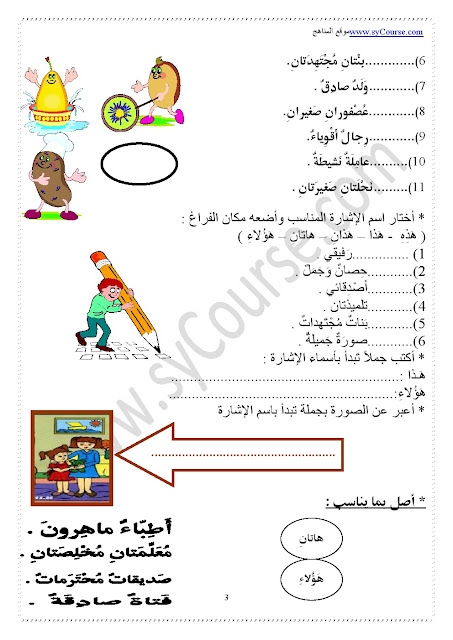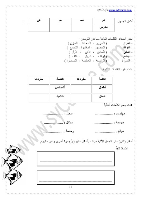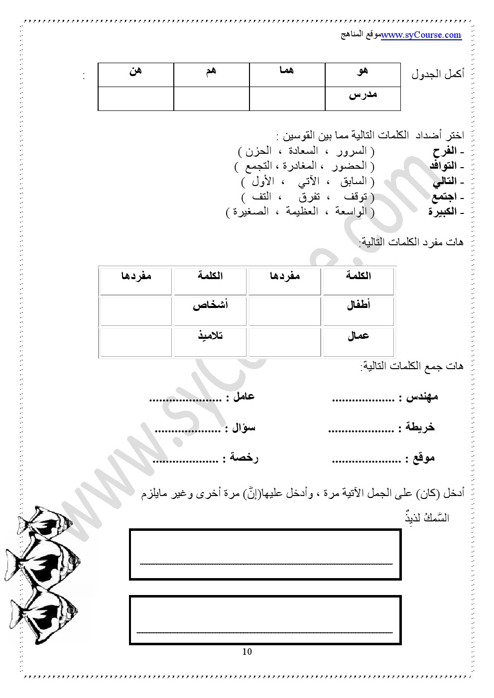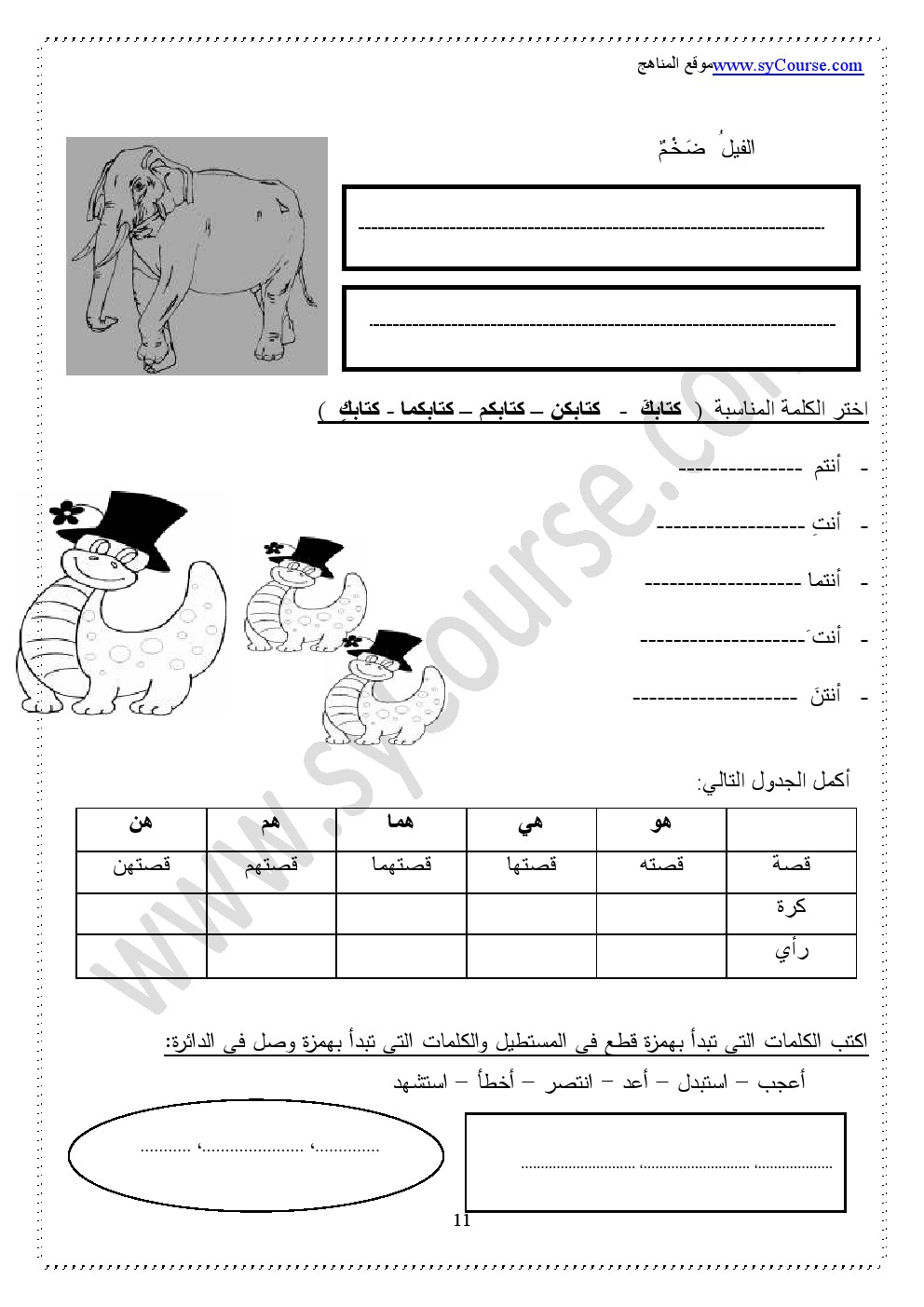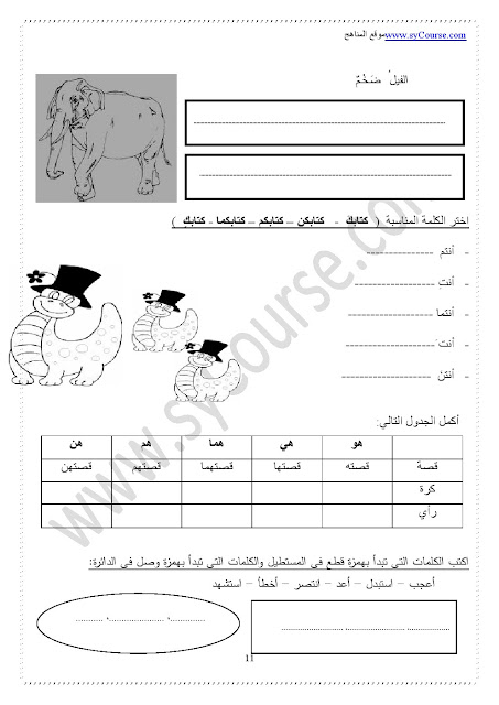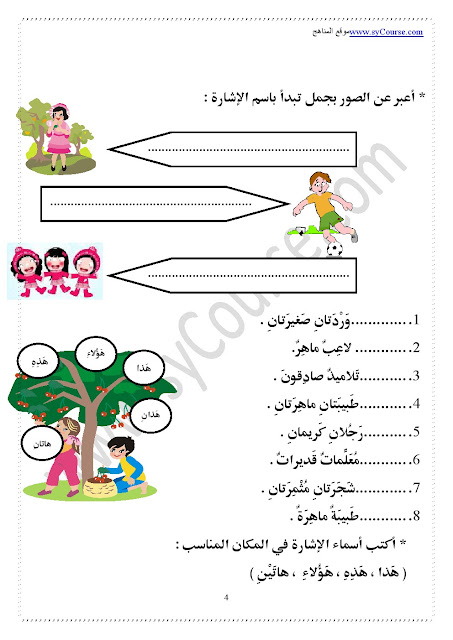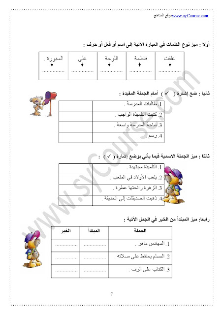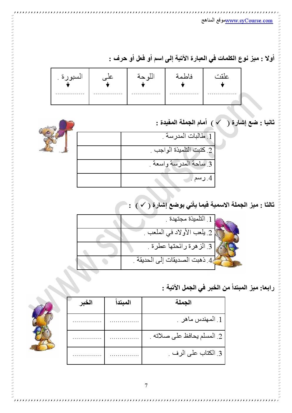 مذكرة (أسماء الإشارة أنواع الكلمات المبتدأ والخبر كان الهمزات) | ||