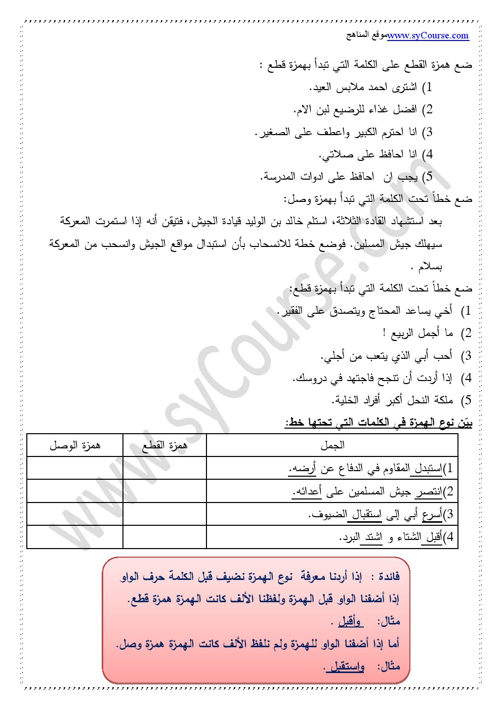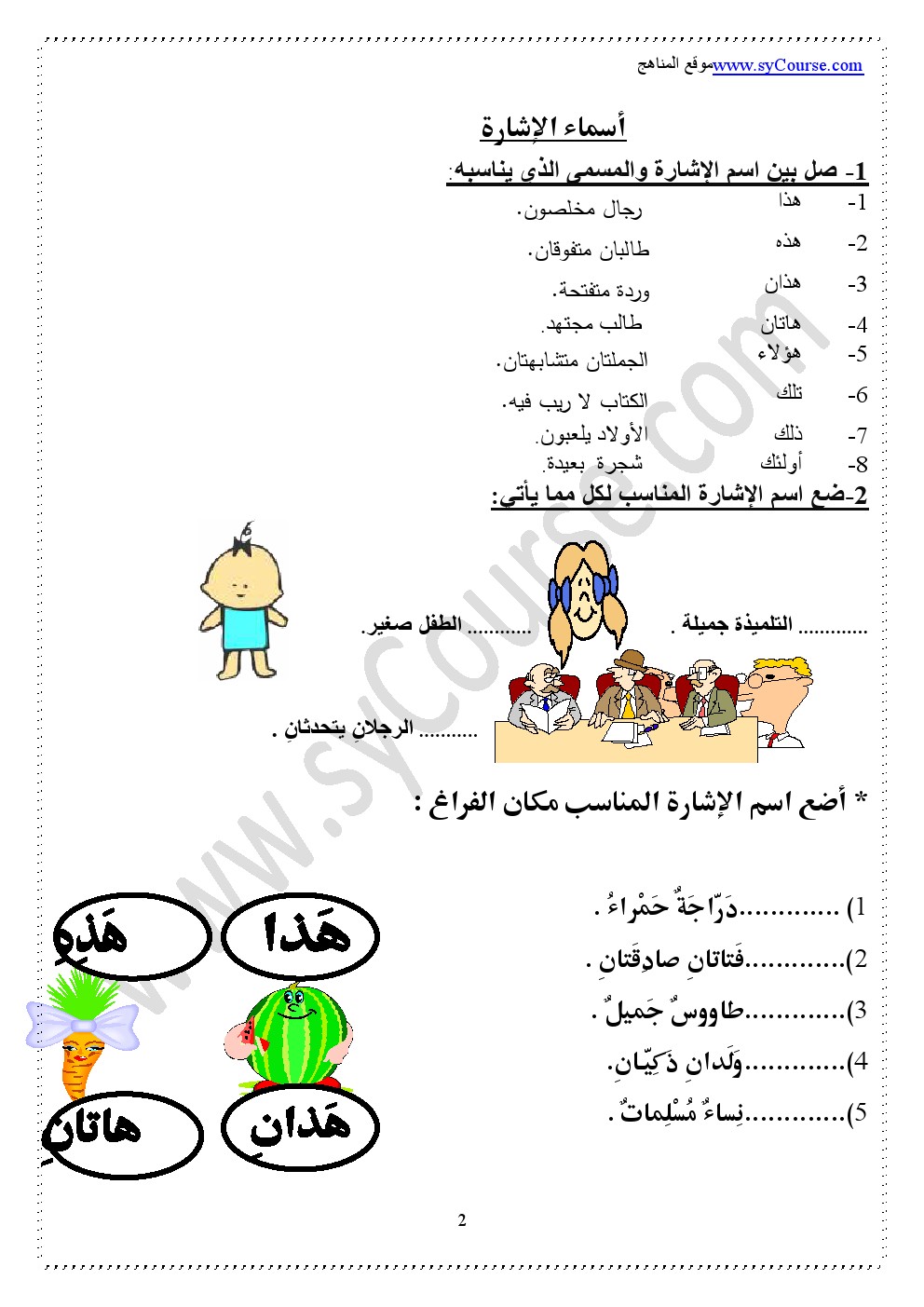 | مذكرة (أسماء الإشارة أنواع الكلمات المبتدأ والخبر كان الهمزات) | ||