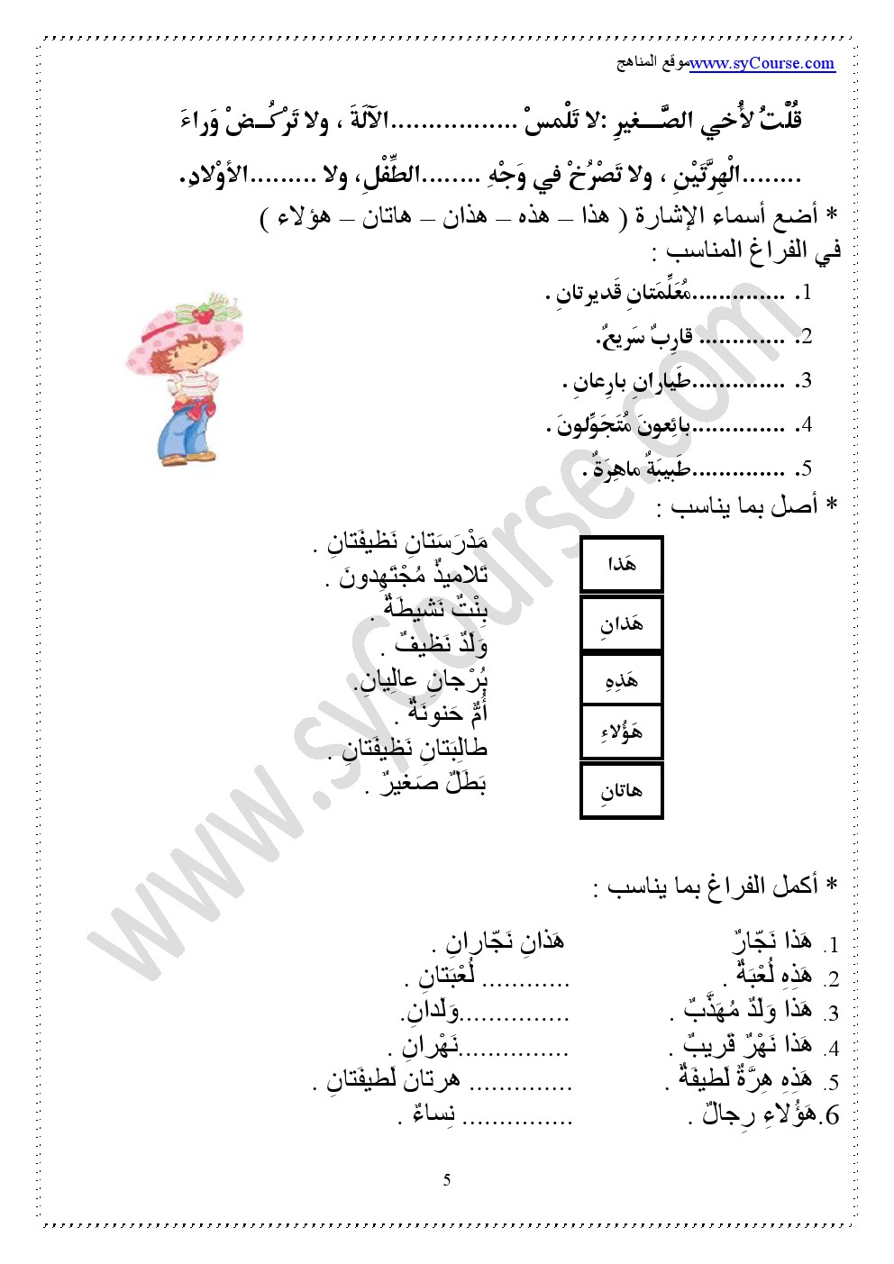 معلومات الملف: الصف الخامس, الفصل الثاني, لغة عربية, مذكرة (أسماء الإشارة, أنواع الكلمات, المبتدأ والخبر, كان, الهمزات) | ||