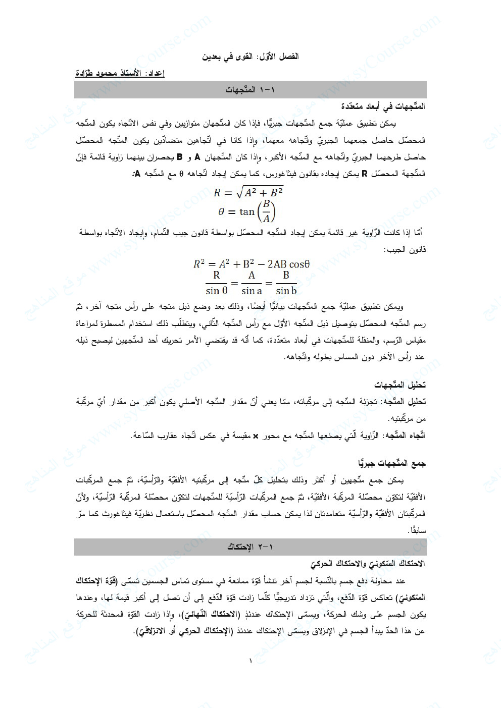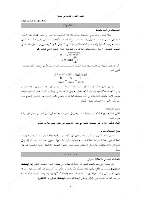 معلومات الملف: الصف العاشر العام, الفصل الثاني, فيزياء, ملخص (القوى في بعدين) | ||