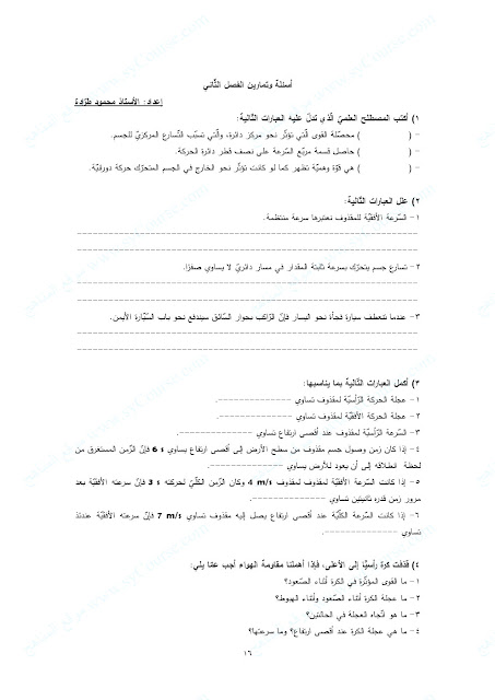 معلومات الملف: الصف العاشر العام, الفصل الثاني, فيزياء, ملخص (الحركة في بعدين) | ||