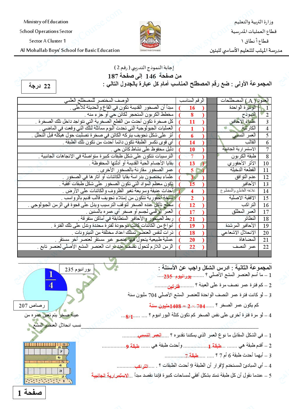 معلومات الملف: الصف الثامن, الفصل الثاني, علوم,نموذجامتحاني (2) لامتحان منتصف الفصل مع الإجابات | ||