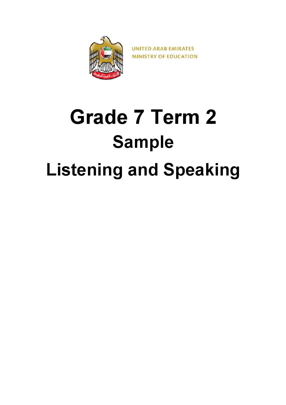 معلومات الملف: الصف السابع, الفصل الثاني, لغة انكليزية,نموذجامتحان الاستماع والمحادثة لنهاية الفصل الثاني | ||