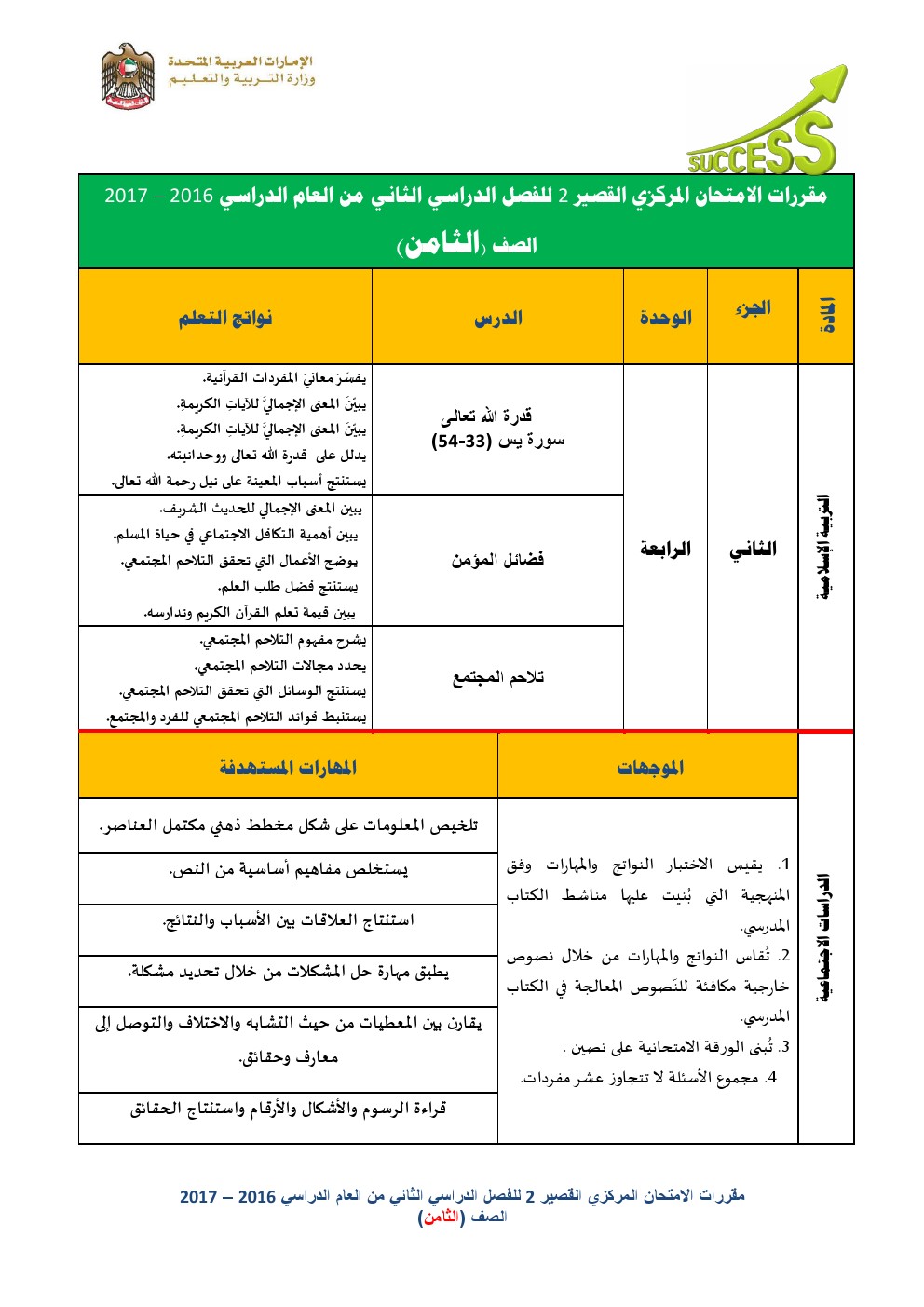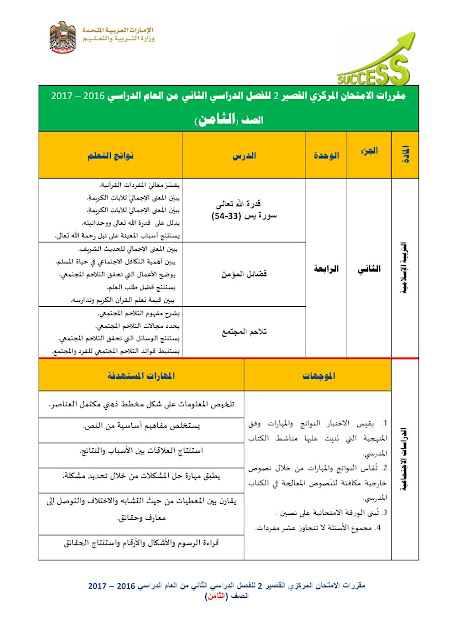 الصف الثامن الفصل الثاني تربية اسلامية واجتماعيات مقررات الامتحان المركزي القصير | ||