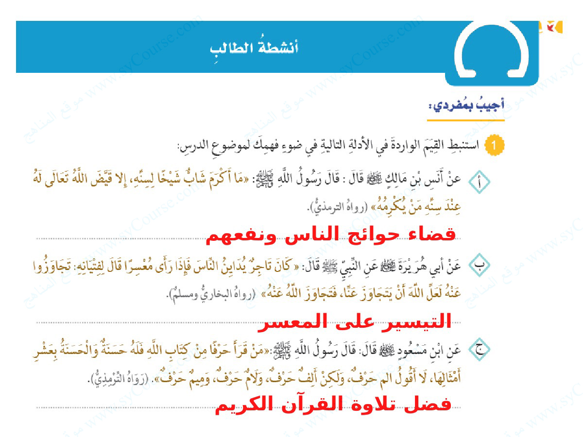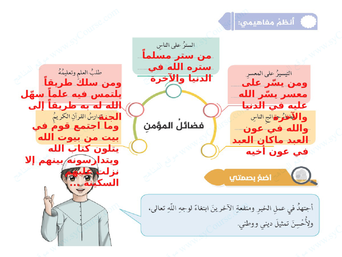 الصف الثامن , الفصل الثاني, تربية اسلامية, حلول درس فضائل المؤمن