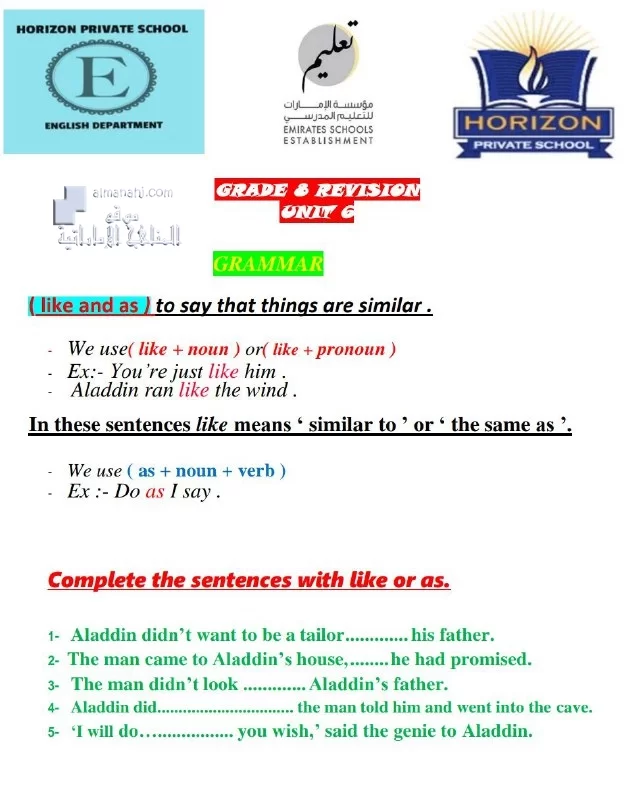 تم إيجاد الملف: مراجعة الوحدة السادسة Revision Unit 6