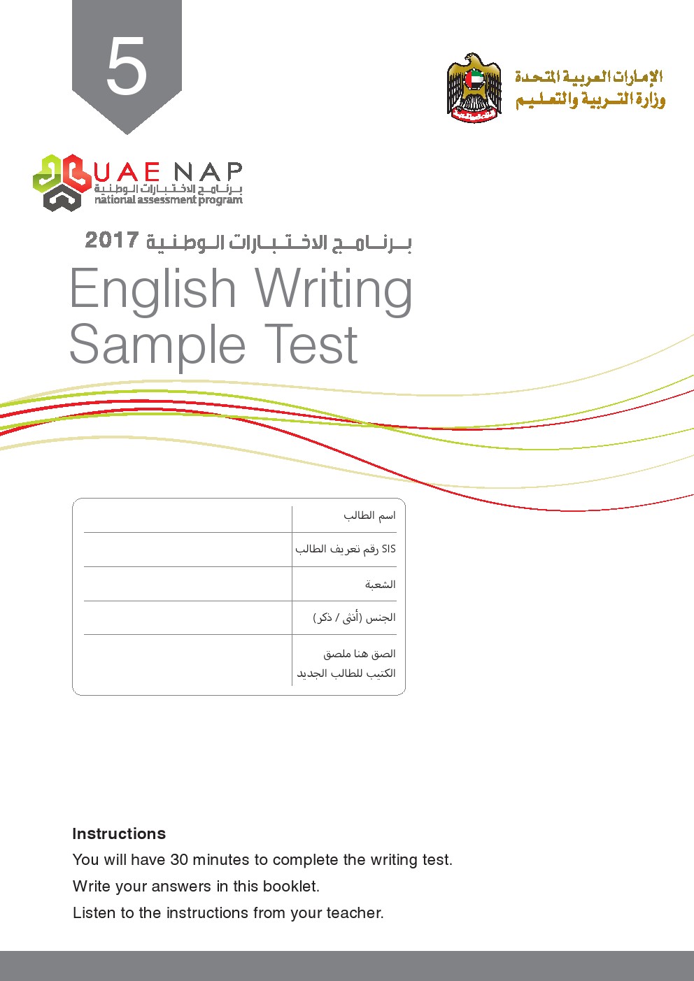لغة انجليزية النموذج التدريبي الرسمي لامتحان الكتابة للاختبار الوطني 2017, الصف الخامس, الامتحانات, الفصل الثاني, 2016-2017, منهج انجليزي - المناهج الإماراتية http://sycourse.com/up/do.php?id=196
