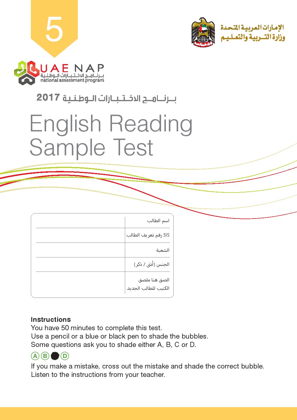 الصف الخامس, الفصل الثاني, لغة  انكليزية,  النموذج التدريبي الرسمي لامتحان القراءة للاختبار الوطني لنهاية الفصل الثاني 2017 الذي أصدرته وزارة التربية والتعليم الاماراتية من أجل التدرب على الأسئلة الوزارية للاختبار الوطني.
