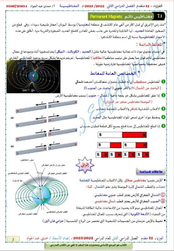 ملزمة الوحدة السابعة المغناطيسية متبوعة بالإجابات - إعداد: حمدي عبد الجواد | ||