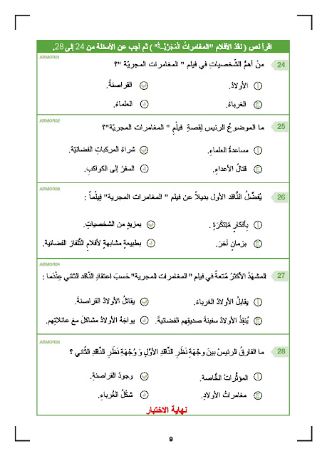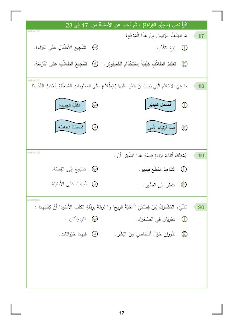 | النموذج التدريبي الرسمي لامتحان القارءة للاختبار الوطني 2017 | ||