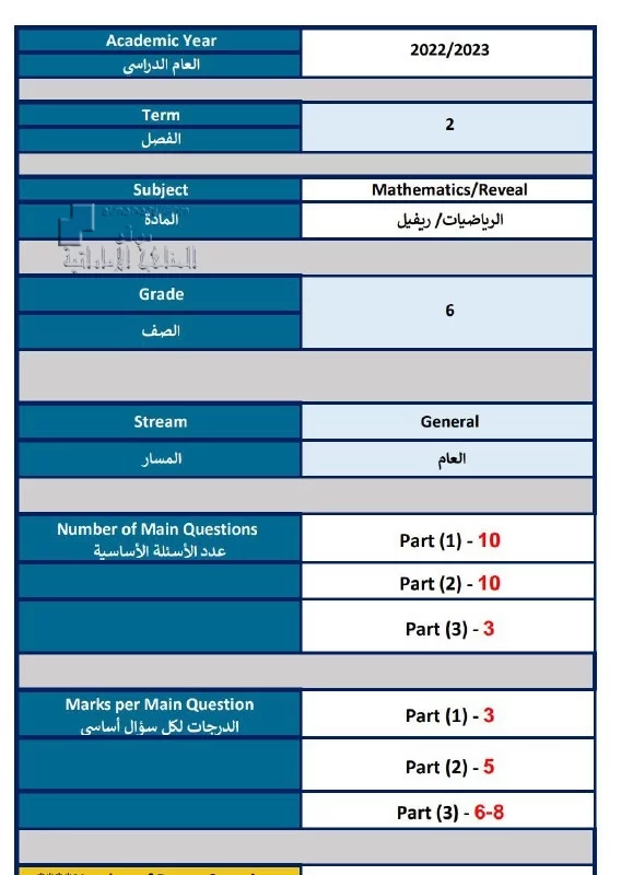 معلومات الملف: نرفق لكم ملف الذي يتضمننموذجالهيكل الوزاري (ريفيل - Reveal) من مادة الرياضيات للصف السادس الفصل الدراسي الثاني للعام الدراسي 2022-2023. | ||