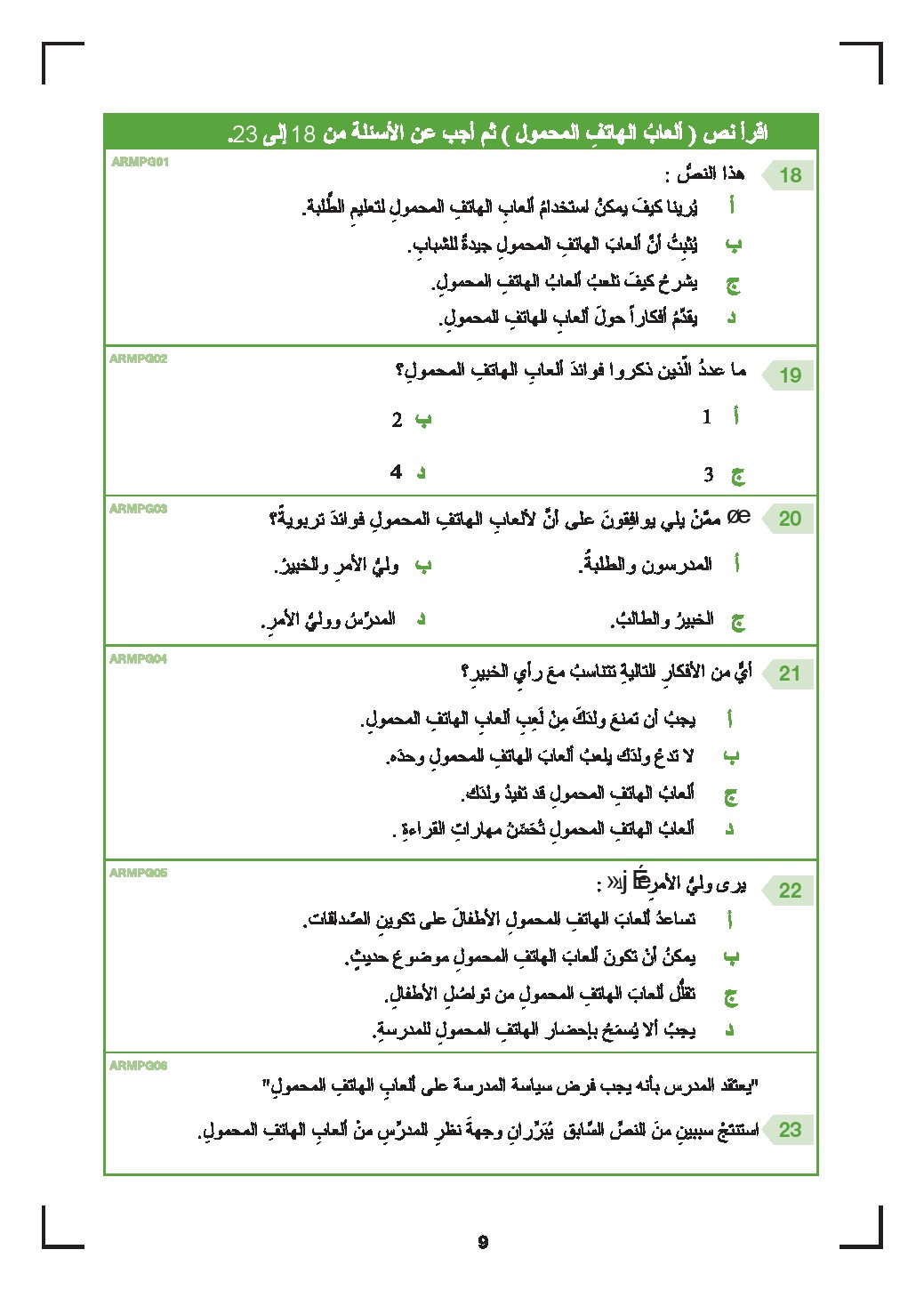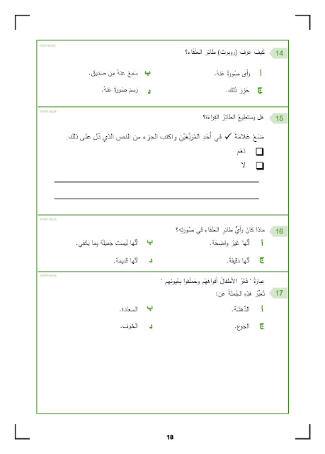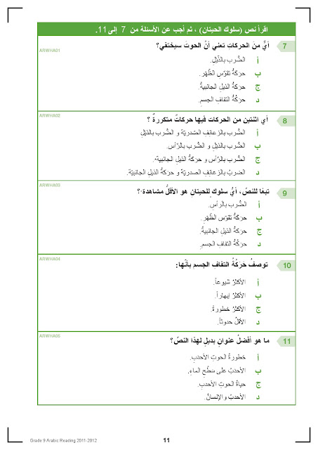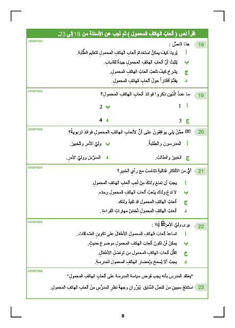 معلومات الملف: الصف التاسع, الفصل الثاني, لغة عربية, النموذج الرسمي لامتحان القراءة للاختبار الوطني 2017 | ||