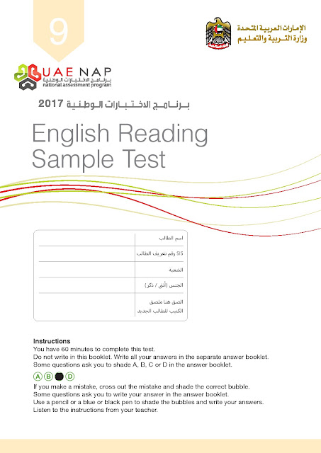 | معلومات الملف: الصف التاسع, الفصل الثاني, لغة انكليزية, النموذج الرسمي لامتحان القراءة للاختبار الوطني 2017 | ||