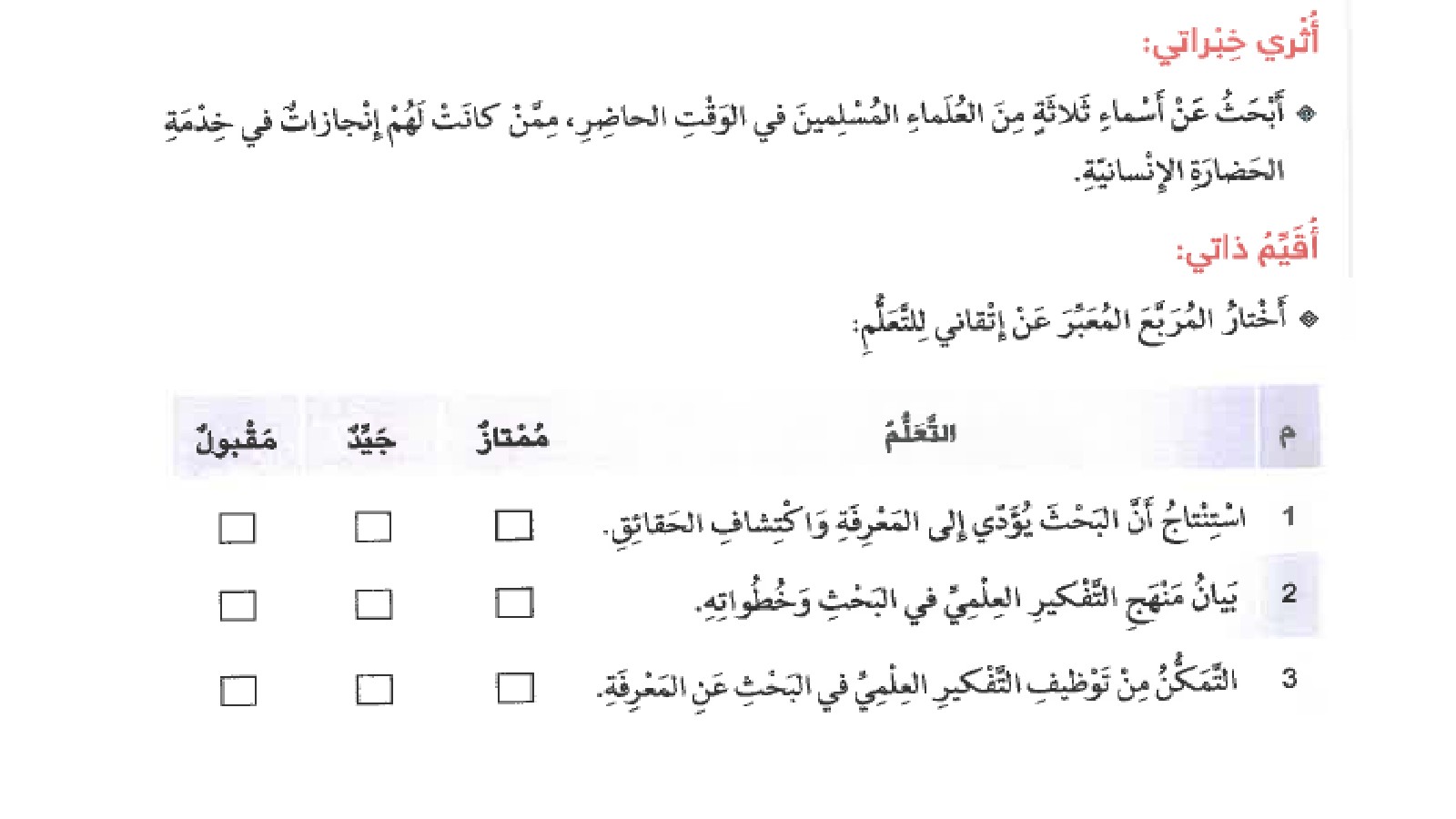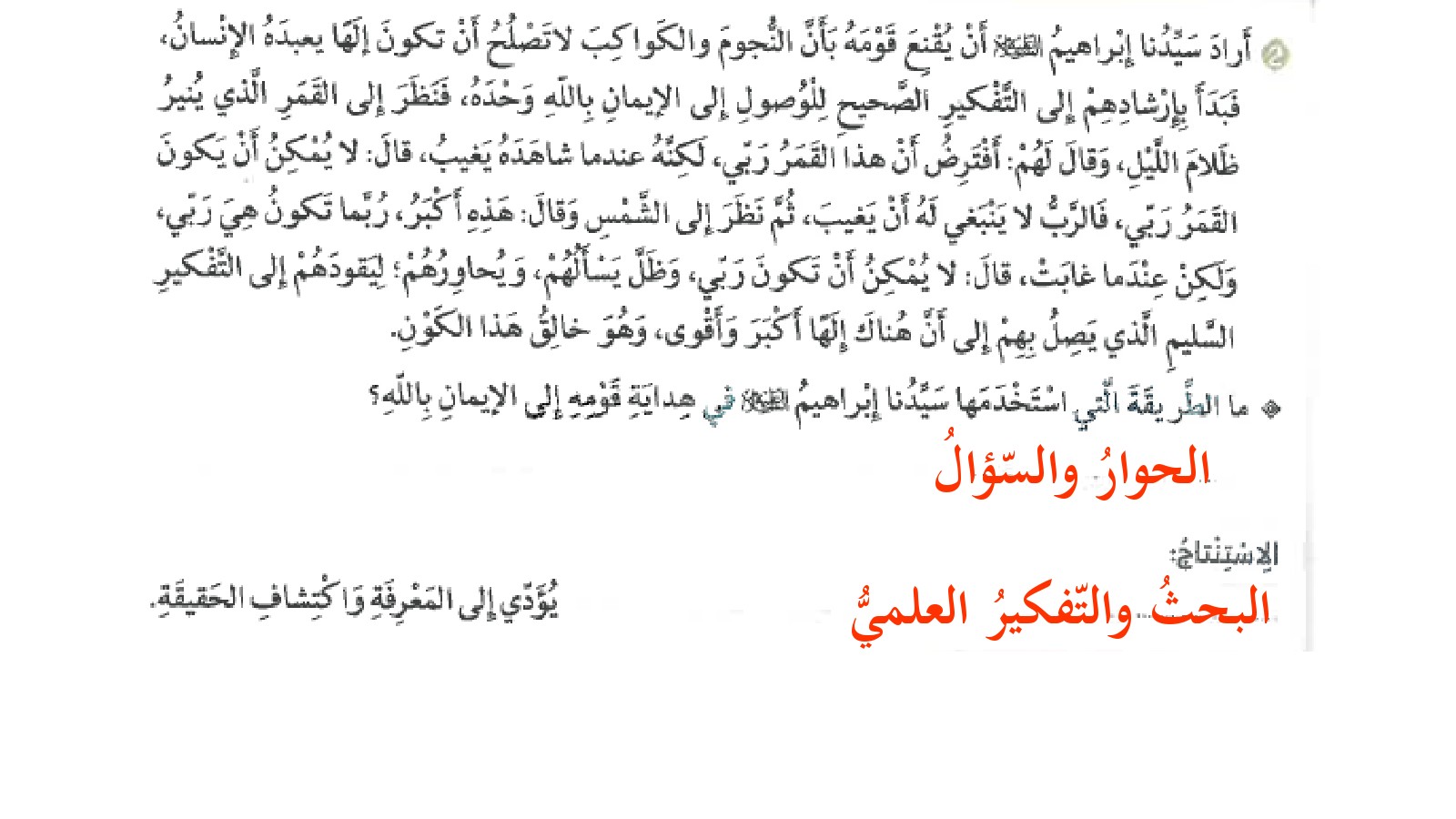 الصف الرابع, الفصل الثاني, تربية اسلامية, حلول درس (التفكير والبحث العلمي)