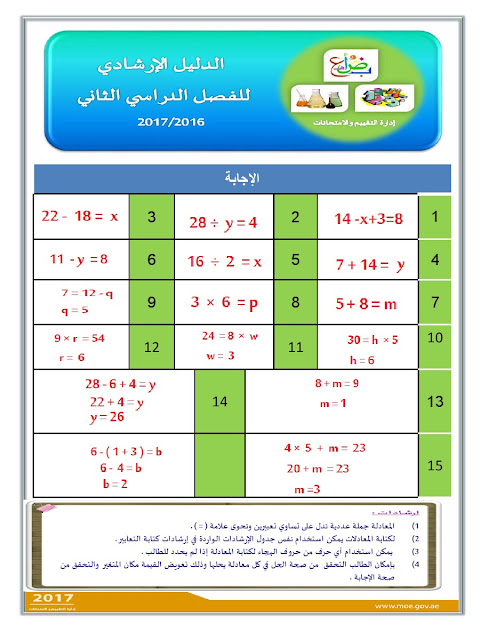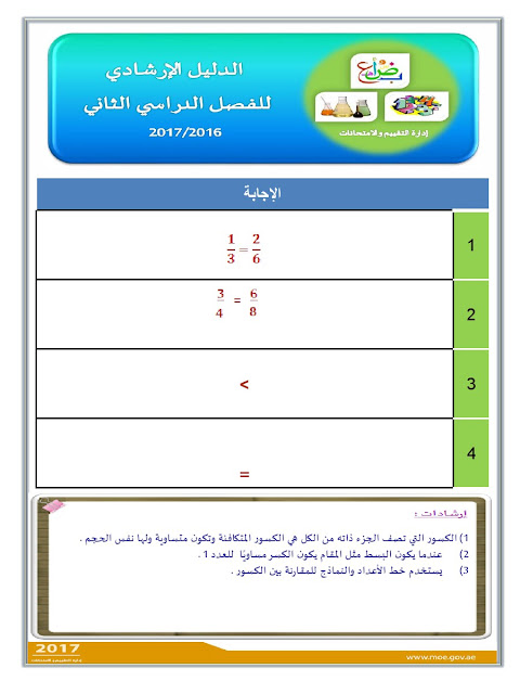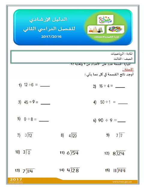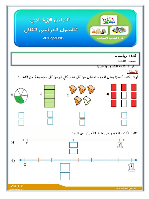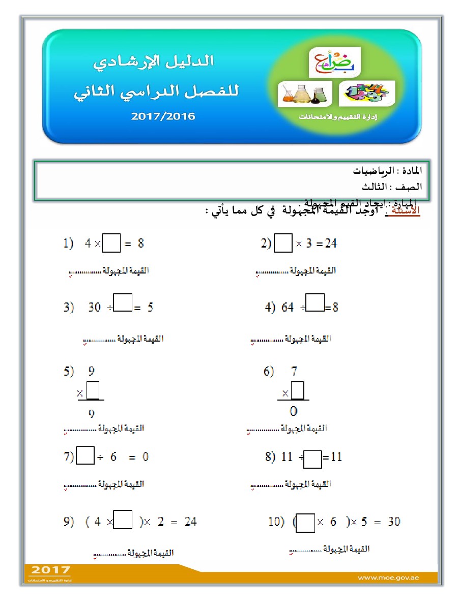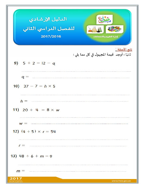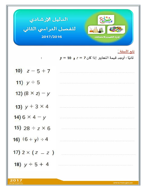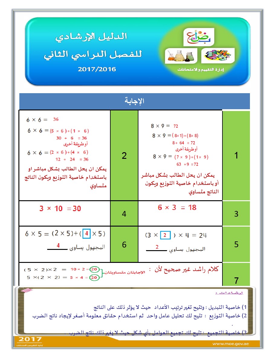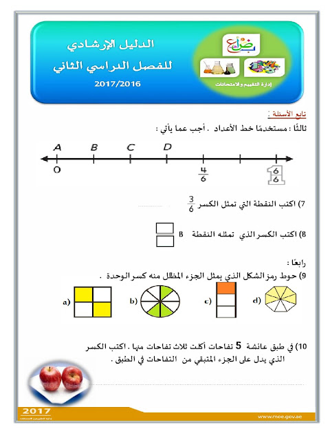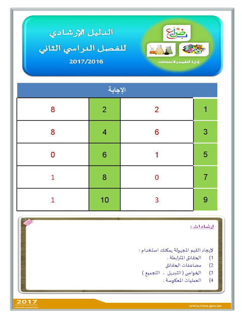 معلومات الملف: الصف الثالث, الفصل الثاني, رياضيات, الدليل الإرشادي لامتحان نهاية الفصل الثاني من العام الدراسي 2016-2017 ـ صور | ||