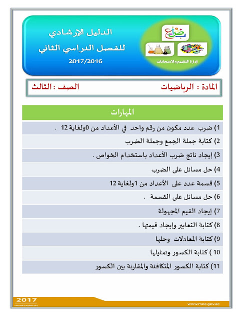 يقدم لكم موقع المناهج الاماراتية رابطاً لتحميل الدليل الارشادي في مادة الرياضيات للصف الثالث- الفصل الثاني من العام الدراسي 2016-2017 وذلك تحضيراً لامتحان