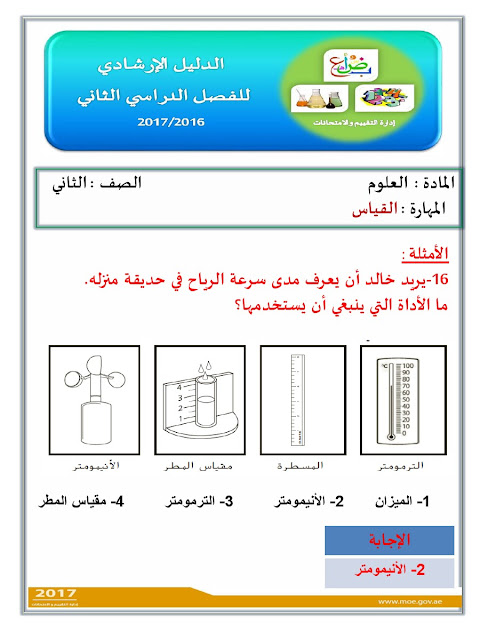 معلومات الملف: الصف الثاني, الفصل الثاني, علوم, الدليل الإرشادي لامتحان نهاية الفصل الثاني من العام الدراسي 2016-2017 | ||