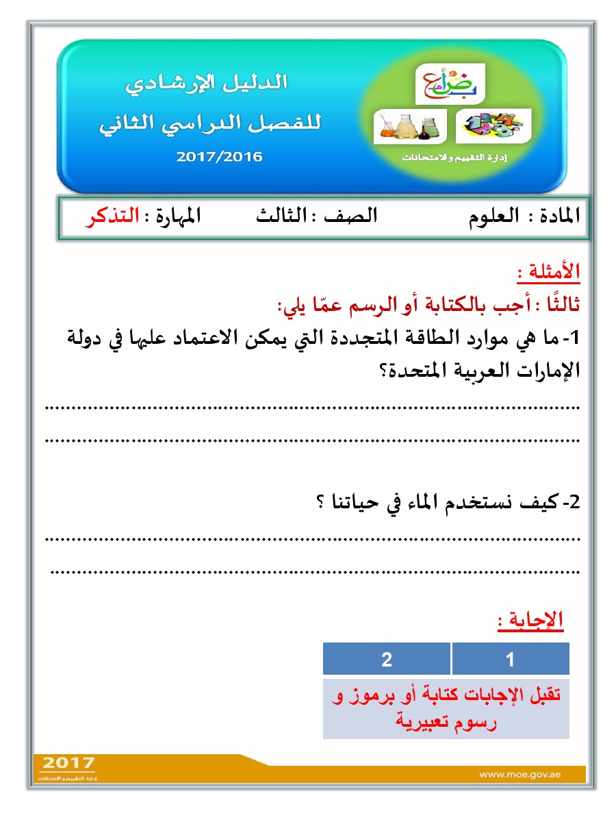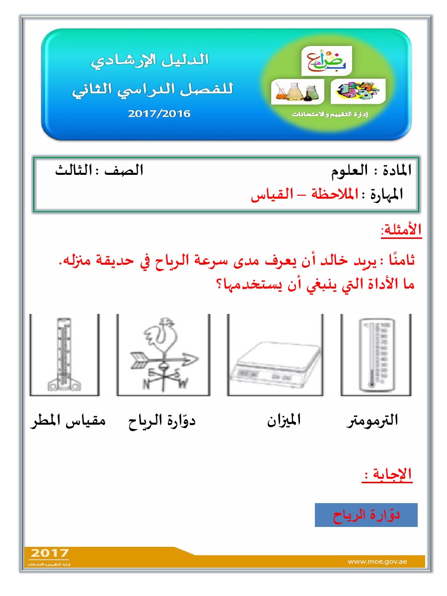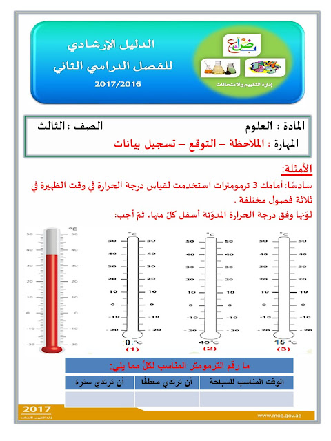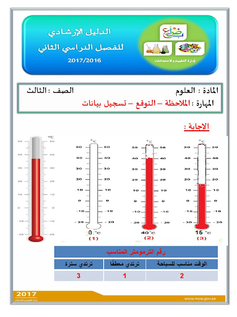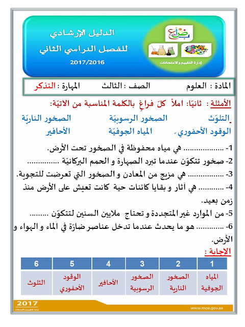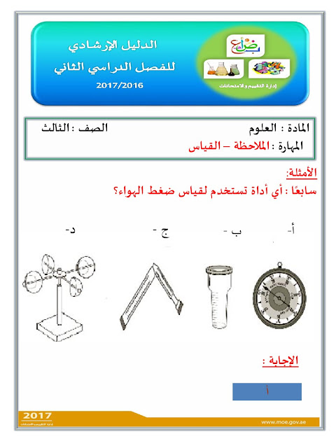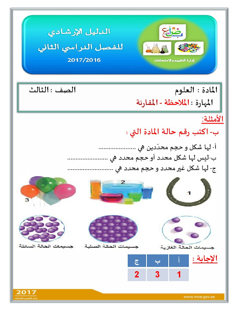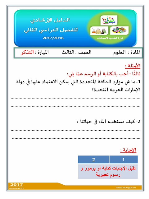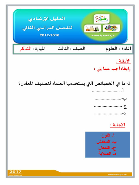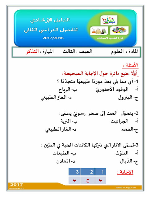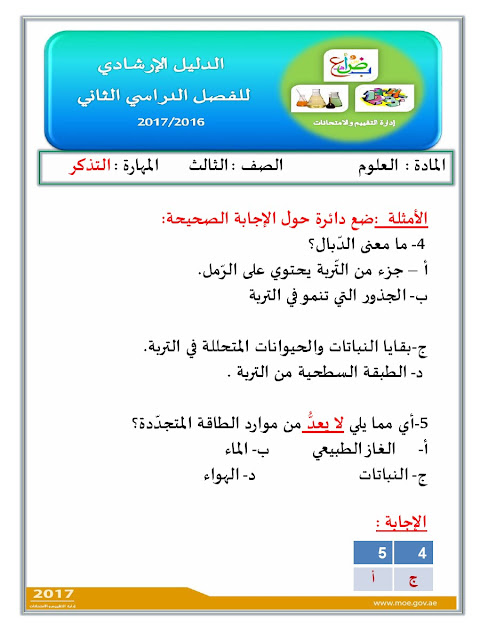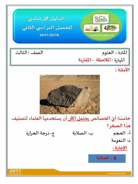 معلومات الملف: الصف الثالث, الفصل الثاني, علوم, الدليل الإرشادي لامتحان نهاية الفصل الثاني من العام الدراسي- صور | ||