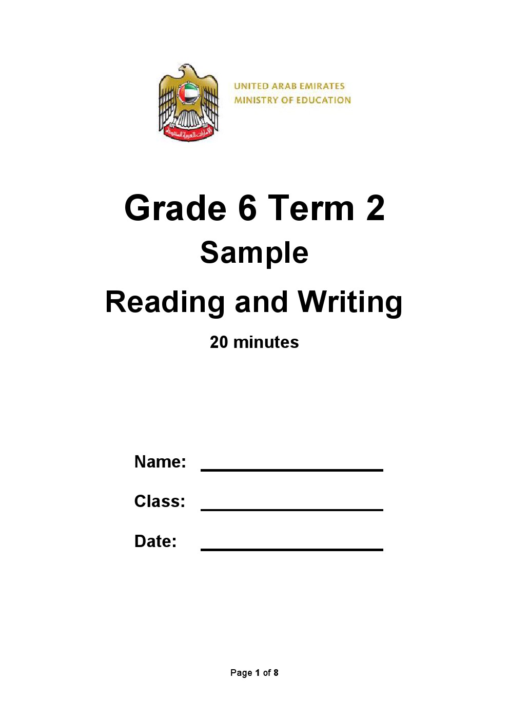 الصف السادس, الفصل الثاني, لغة انكليزية, النموذج الرسمي لامتحان الكتابة لنهاية الفصل الثاني مع الأجوبة 2017