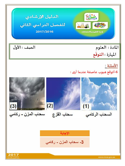 يقدم لكم موقع المناهج الاماراتية الدليل الإرشادي في مادة العلوم للصف الأول وذلك تحضيراً لامتحان نهاية الفصل الثاني من العام الدراسي 2016-2017